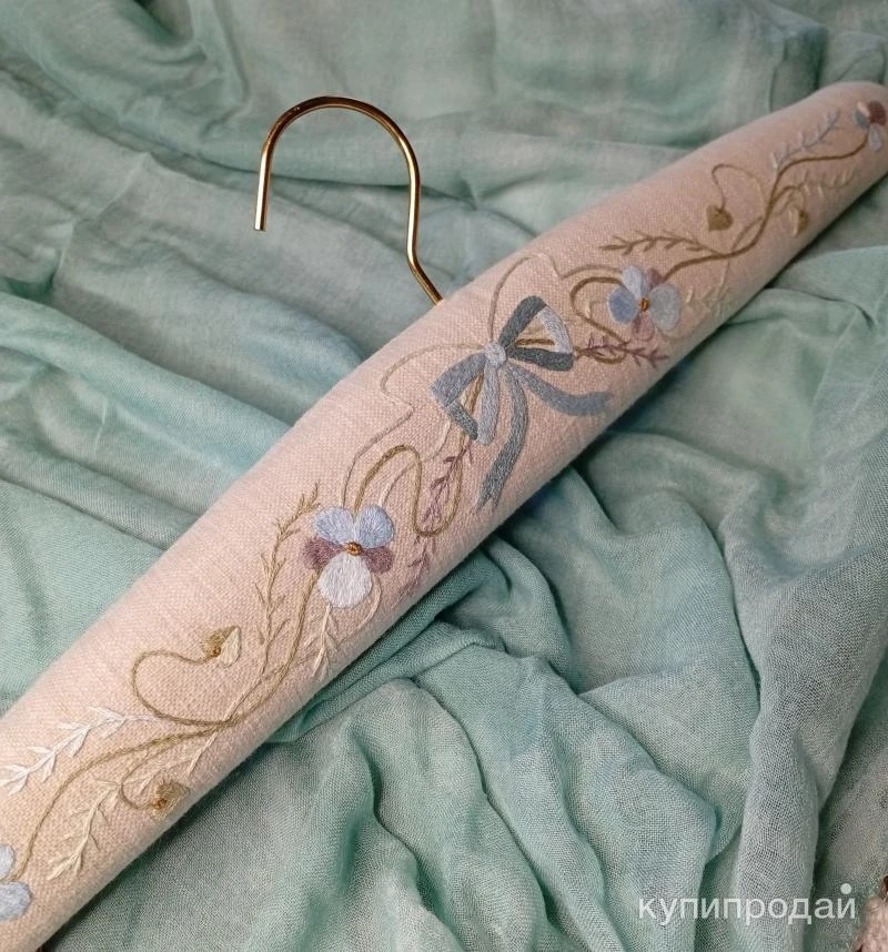 Мягкие плечики для одежды с ручной вышивкой. Авторская работа в единственном экземпляре. Длина 42 см