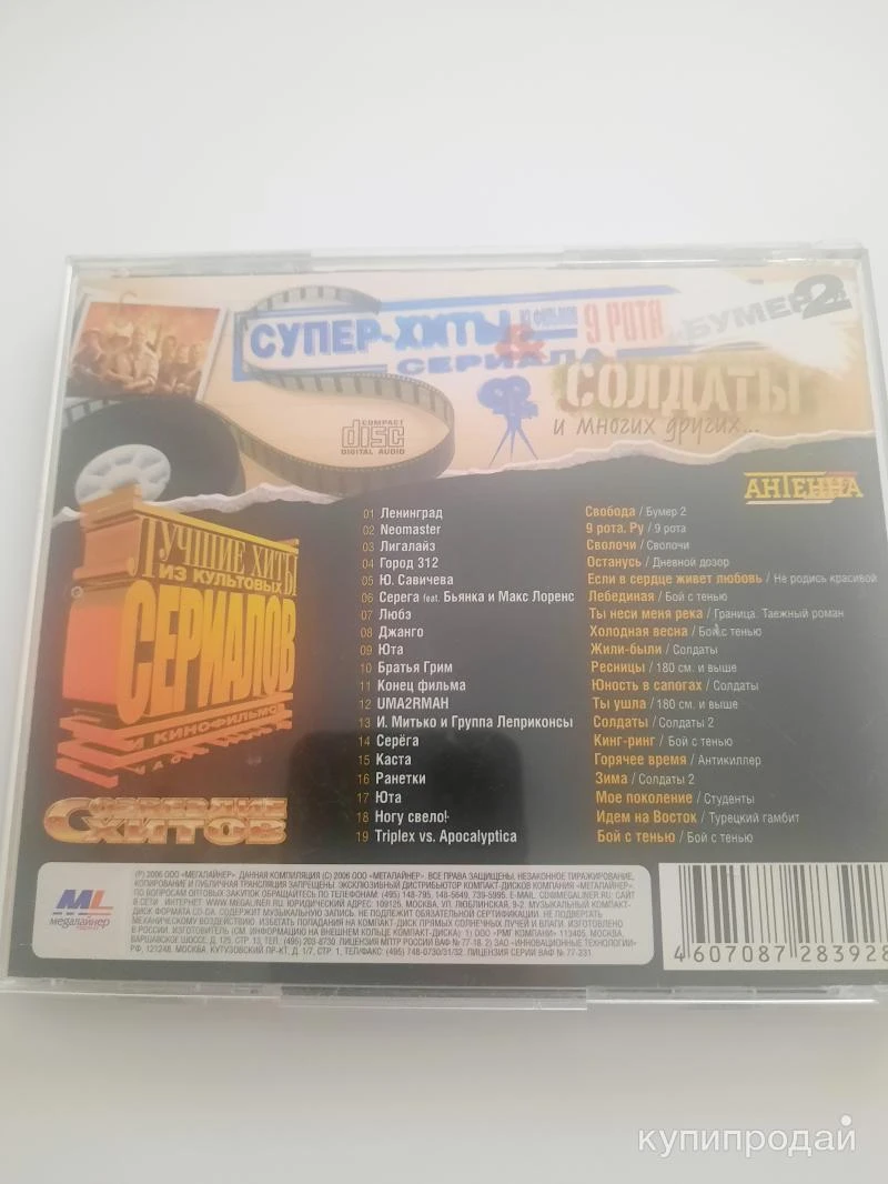 CD диск "Лучшие хиты из культовых сериалов". Б/У. Отправка почтой России, Яндекс доставкой или Boxberry по полной предоплате, почтовые расходы за счет покупателя. Без торга.