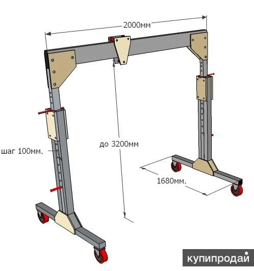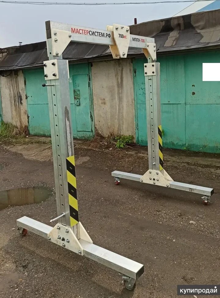 Производстводитель МАСТЕРСИСТЕМ.РФ Универсальный-перемещение с грузом. Идеальное решение для работы с крупными габаритными грузами. Легко разборная конструкция, быстрый монтаж и демонтаж без применения специальных инструментов и устройств. Все элементы скрепляются при помощи болтов и винтов. Полностью разборная конструкция. Крановые системы. РФ Кран сборно-разборный, алюминиевый складной кран. Малые грузоподъёмные краны.Данная конструкция «МППУ-700у» сделана, из прессованного усиленного профиля алюминиевых сплавов и системы узловых крепежей из жестких пластмасс. МППУ-700У устанавливается на специальные шасси с учетом передвижения устройства, при поднятом на нем грузе. На усиленных поворотных колесных опорах, с тормозом. Регулируется по высоте и ширине пролёта. Полностью разборная конструкция.Основные данные и характеристики «МППУ-700У».Грузоподъемность - 700 кг.Высота габаритная - 3500мм.Высота подъема от 1800 до 3200мм.Пролет крана 2000мм.Таль цепная таль г./п. - 700кг.Вес «МППУ-700У» - 75кг. В состав поставки включается следующая документация: паспорт на кран, акт о проведении испытании. Ручной инструмент для подъема грузов в недоступных местах. Строительный телескопический универсальный кран. Данное устройство предназначено для работы в ограниченном пространстве, как в закрытом помещении, так и на открытом пространстве. Кран грузоподъёмный эксплуатируются в пожара-взрывоопасных промышленных зонах.
