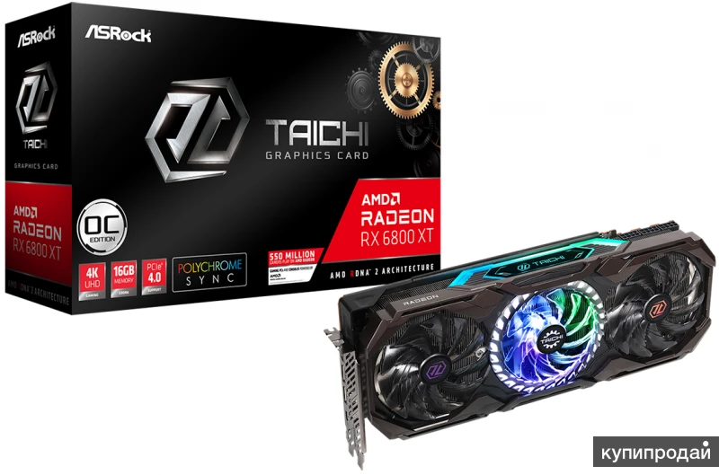 Продаю видеокарту полностью работающую с новейшим внешним видом, чеком, гарантией и коробкой с наклейками видеокарту ASRock Radeon RX 6800 XT Taichi X 16G OC (RX6800XT TCX 16GO). При покупке можно убедиться в её работе. Она у меня одна. TAICHI - мощнее любой 6800 XT (см. описание). Сравните (смотрите ролик и тесты). На производителя ещё обращайте внимание. По цене и производительности -лучший вариант. Если для себя, не пожалеете! Будут вопросы - звоните, договоримся. Причина продажи: хватает выданного на работе ноута. Куплена в 21м году в известном московском супермаркете. Есть чек и гарантия ещё год. Звоните-договоримся. Видеокарта не майнилась, всё проверите сами, обязательно пройдите на ней любые тесты и игры. Есть на чём проверить (тесты + стоят современные игры). Плюс ещё долгая гарантия по чеку. Подсветка у неё красивейшая (там есть её фото). Будут вопросы - звоните на телефон. Характеристики: Частота загрузки: Вплоть до 2360 MHz / 16 Gbps Game Clock: Вплоть до 2110 MHz / 16 Gbps Базовая частота: 1925 MHz / 16 Gbps Технология: 7nm AMD Radeon RX 6800 XT Graphics 16GB 256-bit GDDR6 AMD RDNA 2 Architecture Hardware Raytracing PCI Express 4.0 Support 3 x 8-пин Power Connectors 2 x DisplayPort 1.4 with DSC / 1 x HDMI 2.1 VRR / 1x USB-C Polychrome SYNC Taichi 3X Cooling System Striped Axial Fan Reinforced Metal Frame ARGB Стальная задняя пластина Бесшумное охлаждение 0dB Silent Cooling ДВОЙНОЙ BIOS Super Alloy Graphics Card Основные характеристики: Графический движок - AMD Radeon RX 6800 XT Graphics Стандарт шины - PCI Express 4.0 x16 DirectX - 12 Ultimate OpenGL - 4.6 Память - GDDR6 16GB Частота движка - Частота загрузки: Вплоть до 2360 MHz - Game Clock: Вплоть до 2110 MHz - Базовая частота: 1925 MHz Stream-процессоры - 4608 Compute Units - 72 Частота памяти - 16 Gbps Шина памяти - 256-bit Разрешение - Цифровое макс. разрешение: 7680 x 4320 Интерфейс - 1 x HDMI 2.1 VRR - 2 x DisplayPort 1.4 with DSC - 1 x USB-C HDCP - Yes Мульти-просмотр - 4 Разъём питания - 3 x 8-пин Аксессуары - 1 x Sticker, 1 x Coaster, 1 x Door Hanger, 1 x инструкция по быстрой установке Габариты - 330 x 140 x 56 mm, 2.8-slot Net Weight - 1815 g