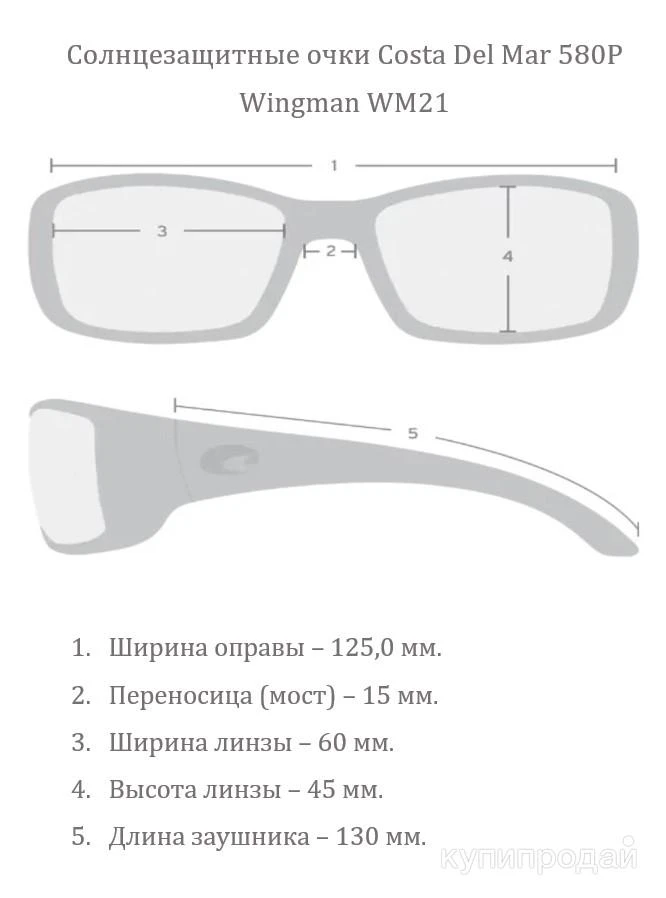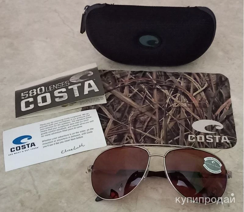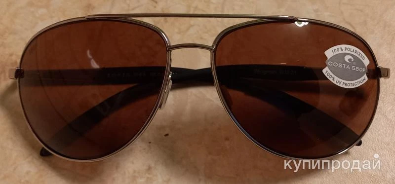 Продаю новые поляризационные солнцезащитные очки американской фирмы Costa Del Mar 580Р модель Wingman WM21. Эта модель очков с двойным мостом имеет современный стильный дизайн, прекрасно смотрится на мужчинах и на женщинах!!! Производство – Италия. Оправа модели Wingman изготовлена из устойчивого к коррозии металла под названием монель, цвета серебристый палладий. Шарнир крепления заушников к оправе дополнен пружинным механизмом – флексом. Наличие флекса в креплении делает заушники более подвижными и устойчивыми к повреждениям. Кроме того, очки с флексами удобны в ношении, поскольку пружинный механизм делает посадку заушников более мягкой, не допуская сдавливания головы. Линзы выполнены из поляризованного поликарбоната 580P (Polycarbonate) lenses. Материал линз легкий и ударопрочный, устойчивый к царапинам благодаря системе C-Wall®. Цвет линз – медный (коричневый). Линзы Costa 580 были разработаны собственными экспертами по спектру света. Благодаря запатентованной технологии светофильтра, он блокирует спектр тяжелого для восприятия глазами желтого цвета на уровне 580 нанометров и вредный в высокой степени энергии ультрафиолетовый синий свет. Блокирование резкого желтого света с длиной волны 580 нм в видимом спектре света естественным образом увеличивает количество красного, зеленого и синего, улучшая цвета, контрастность и четкости изображения. Линзы Costa 580Р имеют 100% УФ-блокировку для максимальной защиты глаз и 100% поляризацию для отражения бликов. Поляризационные солнцезащитные очки фирмы Costa Del Mar позволяют защитить органы зрения от ослепляющих бликов, которые образуются при отражении солнечного света от водной поверхности, снега, стен и крыш домов, а также дорожного полотна и других горизонтальных поверхностей. Они способствуют повышению качества зрения в путешествиях, на рыбалке, при вождении автомобиля, а также в повседневной деятельности. В комплекте с очками имеется фирменный ударопрочный и жесткий чехол Costa на молнии, а также фирменная тканевая салфетка Costa для ухода за линзами.