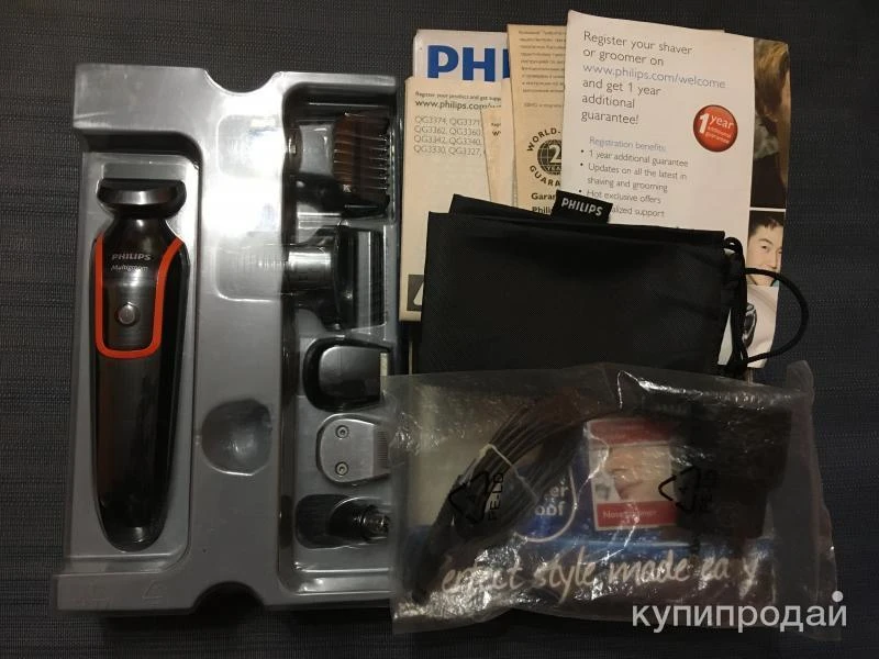 Б/У! Полный комплект! Когда-то подарили, когда первый раз отращивал бороду, воспользовался раз десять и то двумя насадками для бороды, гребни даже не использовал, да и остальное не пробовал. Потом бороду перестал носить. Сейчас опять стал носить бороду, но уже сам себе взял профессиональный триммер. При работе мотора триммера почему-то поворачиваются насадки, поэтому их нужно придерживать рукой, все целое, почему и из-за чего так происходит не понятно. Лежит без дела, время от времени подзаряжаю его, продается за ненадобностью. Philips QG3340/16 - Триммер / Машинка для стрижки волос и бороды Общие характеристики Бренд PHILIPS Модель QG3340/16 Установка длины волос от 1 до 18 мм Самозатачивающиеся ножи есть Дополнительные характеристики промывка ножей под водой Насадки, функции Количество насадок в комплекте 6 шт Назначение для носа Триммер Триммер для создания контура Высокоточная бритва Гребень для бороды и щетины с 12 установками Гребень для стрижки волос с 18 установками Количество установок длины 18 установок длины Количество насадок/гребней 4 насадки и 2 гребня Стрижка волос / стайлинг волос на лице Проработка деталей Эспаньолка Длинная борода Усы Четкие контуры Короткая борода Щетина Питание Питание от аккумулятора Время заряда (max) 10 ч Время работы от батарей (max) 35 мин NiMH Дополнительные характеристики Дополнительная комплектация чехол Цвет черный