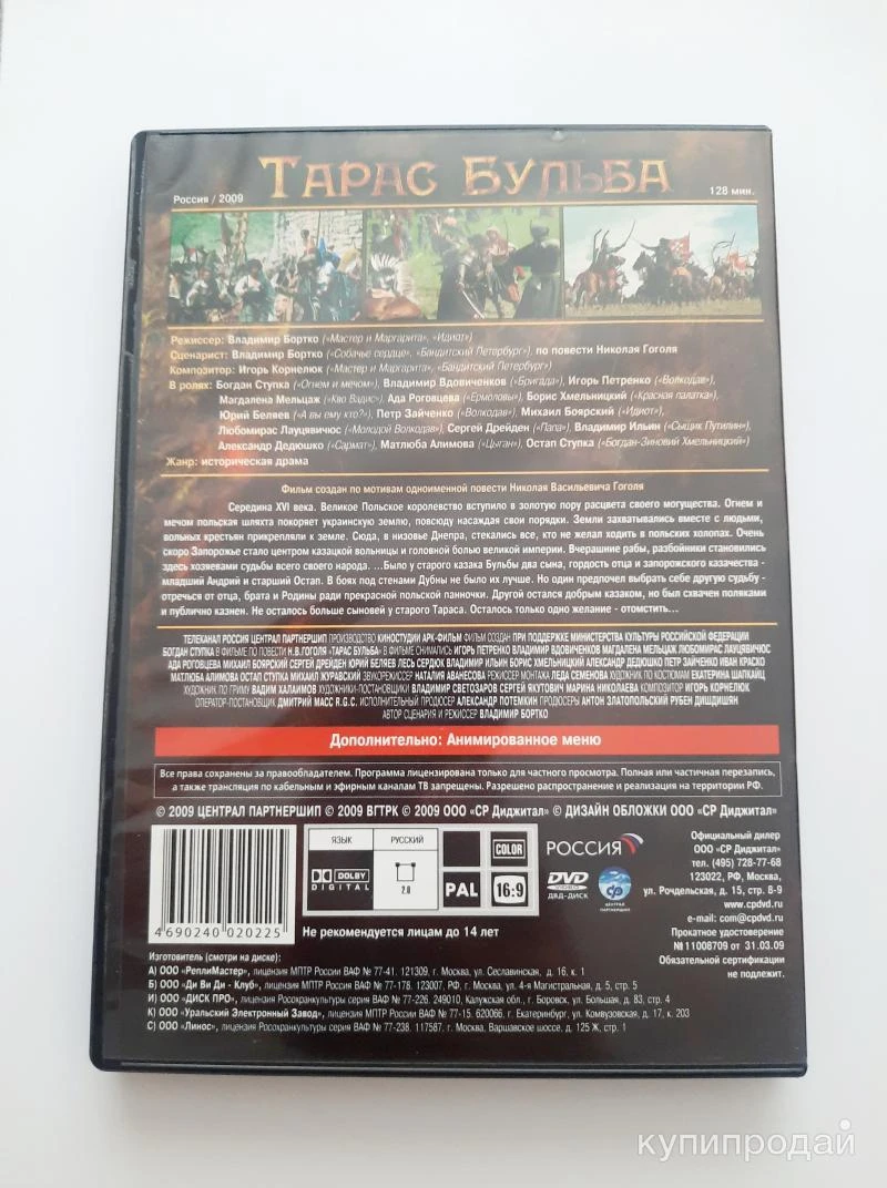 DVD фильм "Тарас Бульба". Б/У. Отправка почтой России, Яндекс доставкой или Boxberry по полной предоплате, почтовые расходы за счет покупателя. Без торга!