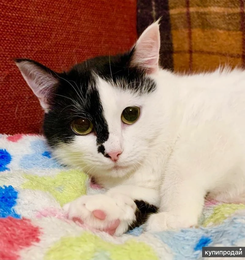 Кошечка Маска надеется, очень надеется в самой глубине души, найти своего человека... Вот такая вот кошка с уникальным окрасом, а какая мордочка: одна половинка белая, другая черная, за это и получила имя Маска. И она грустная скромница с застенчивым характером и одинокой судьбой! Не самый модный окрас, привел к тому, что от кошечки просто избавились и теперь кошка в приюте. ( Но разве есть смысл заводить друга по окрасу или внешности? Присмотритесь к этой девочке!! Она совсем молодая, ухоженная, воспитанная. Застенчивая и трепетная Маска, очень женственная кошка, не терпящая грубости, и слишком навязчивого общения. Спокойная и умиротворенная, если окружающая обстановка ей знакома. С близкими людьми дружелюбна, просит внимания и любит ласку. Маска готова открыть свое сердце тому, кого она по-настоящему полюбит и кто поверит в нее. Мы хотим верить в чудо! Верить и за себя, и за нее! Ведь бывает такое, случаются чудеса, находятся родственные души? Может быть, Вы что-то увидите в ее глазах? Маске 1 год, здорова, стерилизована, знает лоточек. 8 903 678 92 42 Элла