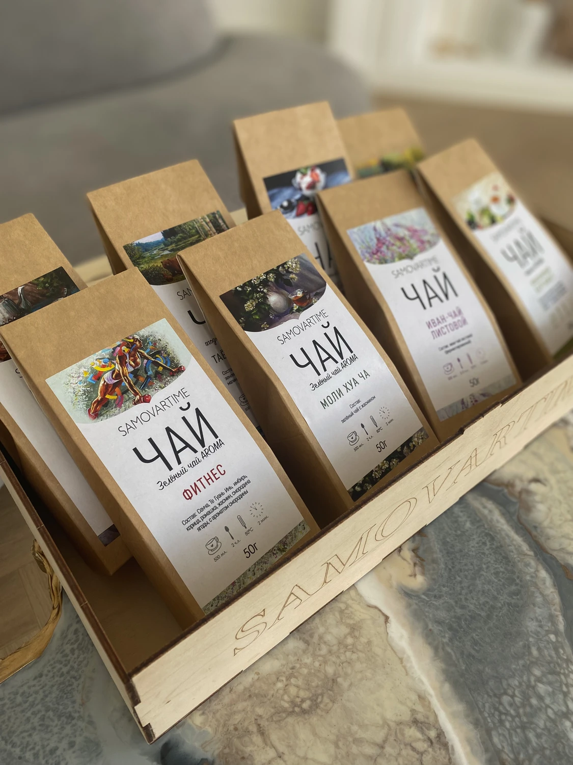 Предлагаем более 400 видов чайных купажей оптом и в розницу (черные, зеленые, травяные, фруктовые, ягодные, этнические, эксклюзивные, связанные чаи,улуны, пуэры, ройбуш, мате), арома кофе зерновой . На всю продукцию имеем сертификат качества. Для чая Samovartime использует качественные основы со всего мира (Кения, Шри-ланка, Китай, Япония, Цейлон и многие другие). Фасовка от 500 грамм до 5 кг.Доставка осуществляется лидирующими транспортными компаниями: Почтой России и ПЭК. В отдельных случаях рассмотрим доставку другими ТК.