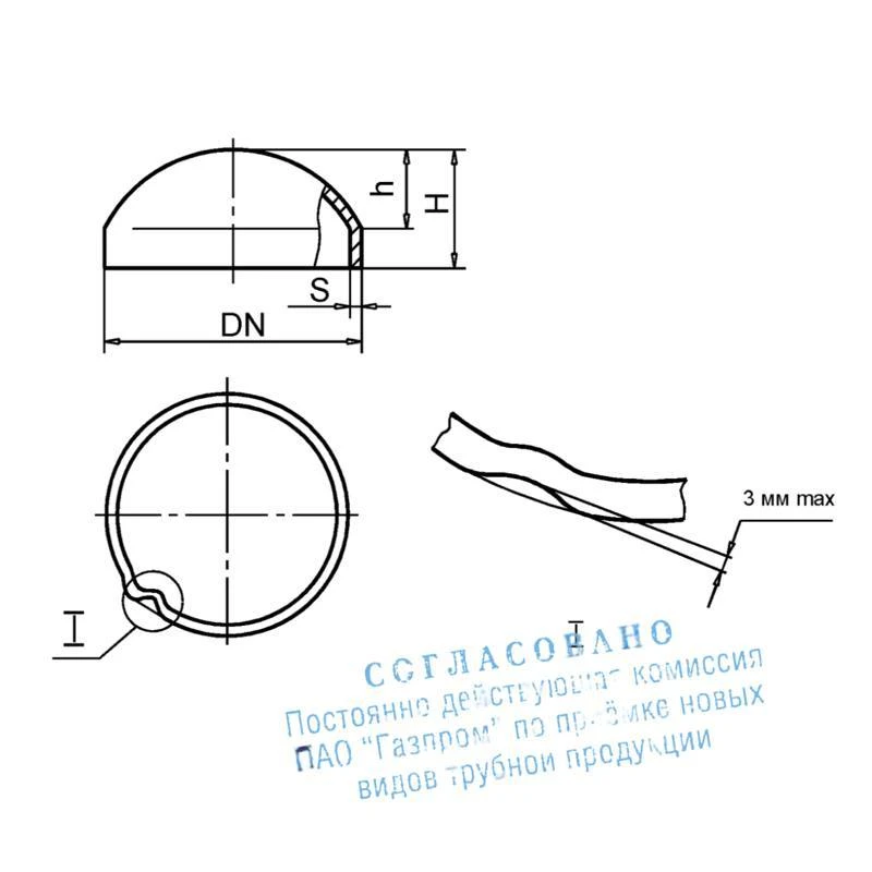 Днище Д I 273(8,0 К52)-7,5(11,25)-0,6-28 ТУ 1469-035-00153229-2015