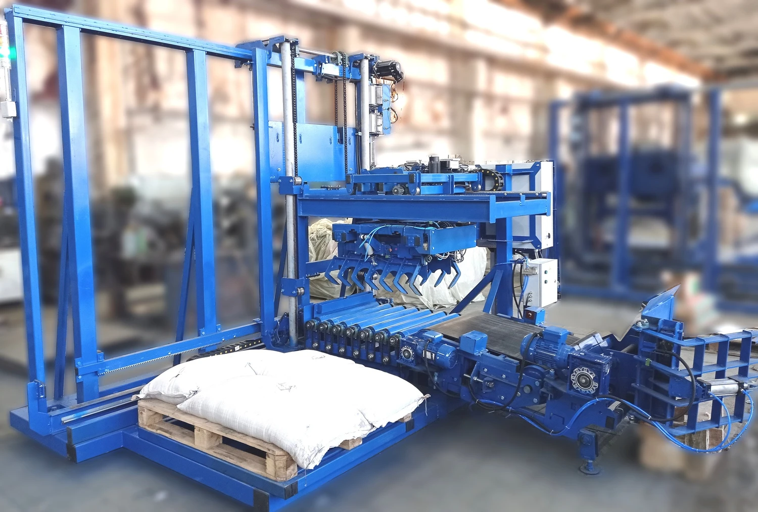 Предназначен для укладки на паллеты зашивных мешков с любыми сыпучими продуктами, в т.ч. с комбикормом, с зерном или крупой, с мукой или отрубями и т.д.