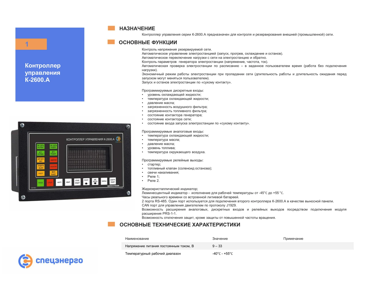 Контроллер управления серии К-2600.А предназначен для контроля и резервирования внешней (промышленной) сети.