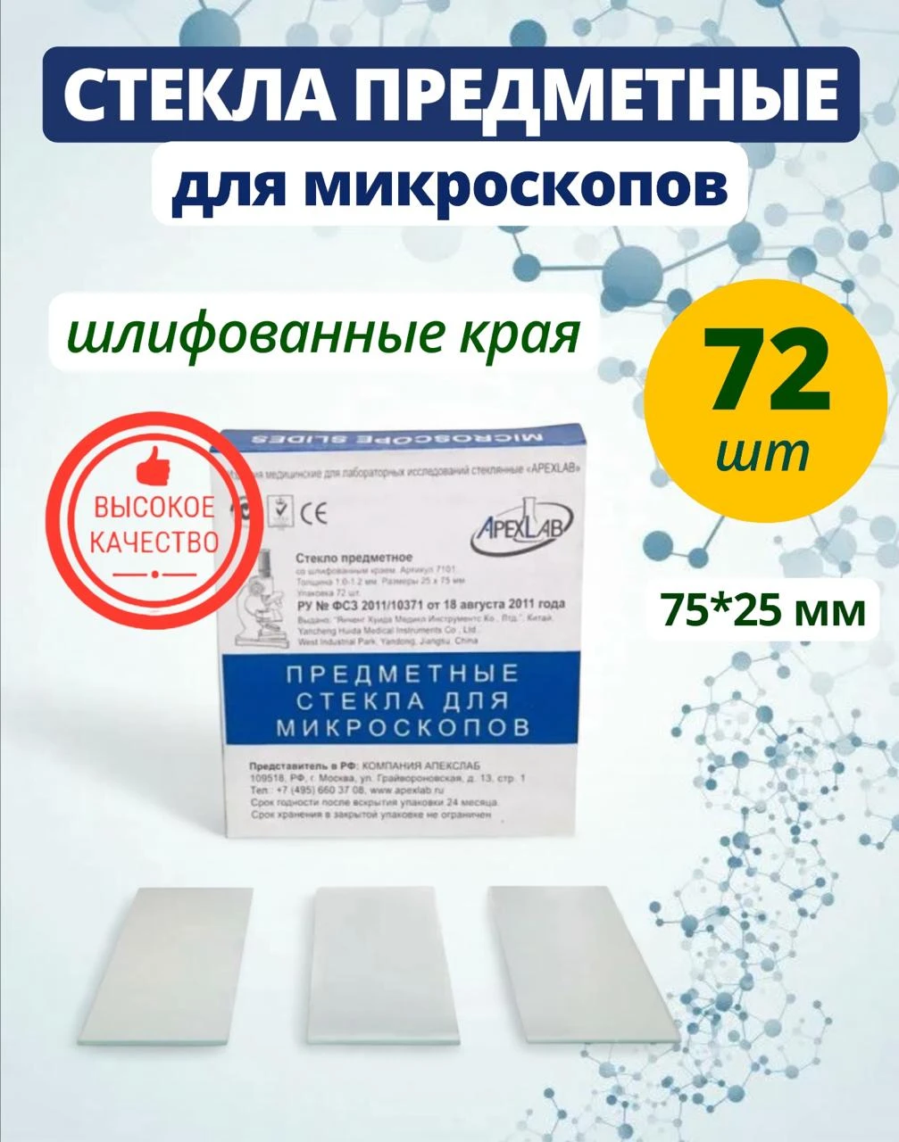 | Стекло предметное для микроскопа со шлифованными краями 72 штуки |