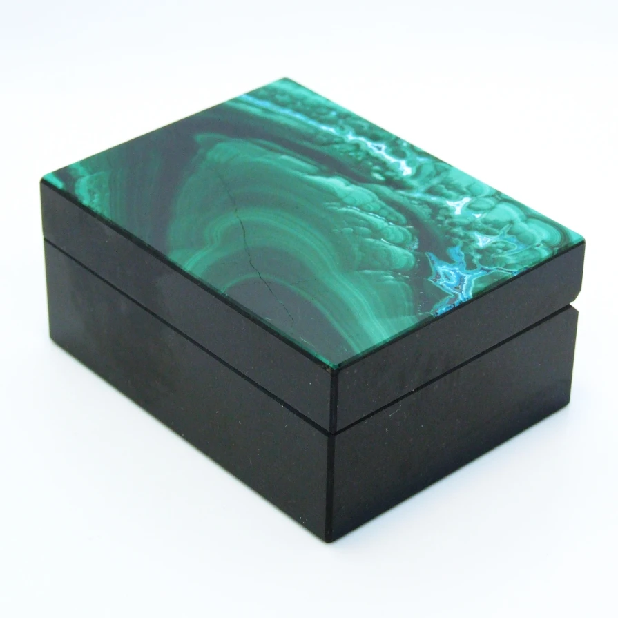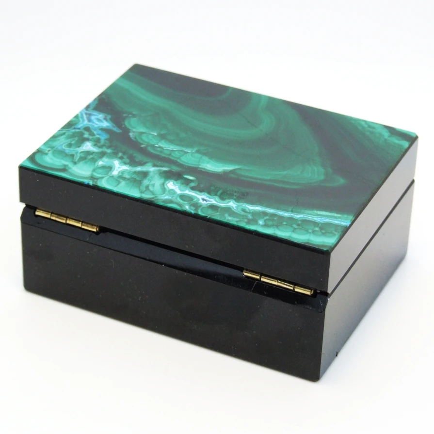 Эксклюзивная, музейного качества Шкатулка из природного самоцвета Malachite with Chrysocolla (Малахит с Хризоколлой) из Конго, Африка.