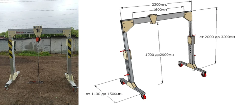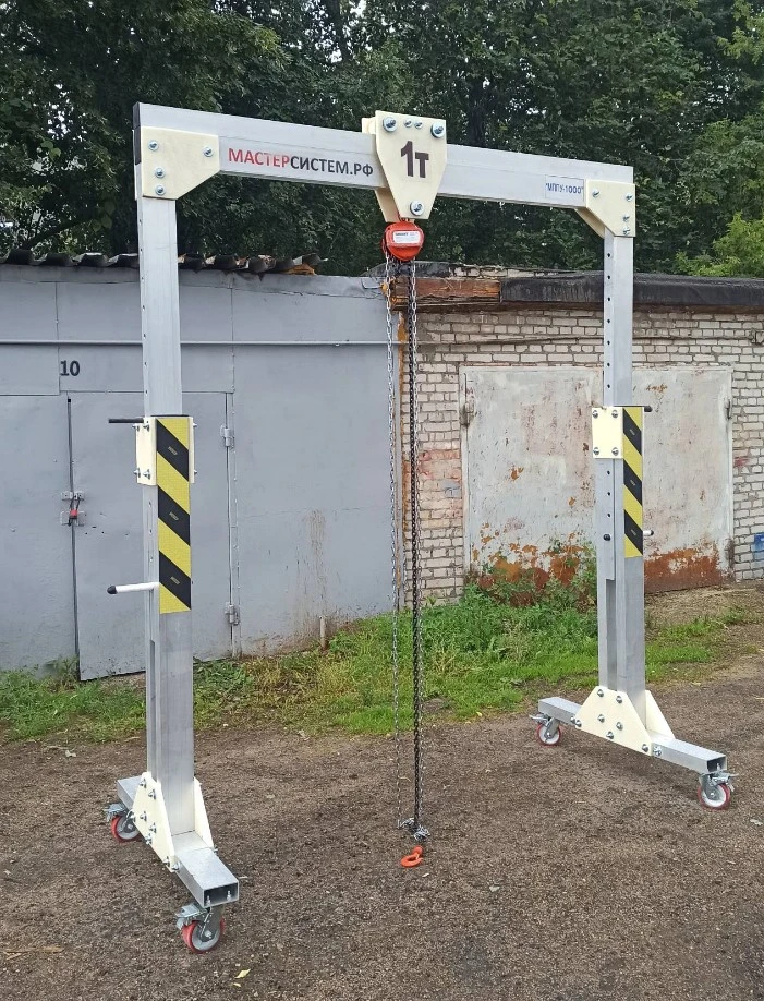 Стойка регулируемая Т образная с шагом 100 мм. -2 шт. Шасси -2 шт. Таль ручная цепная -1 шт.