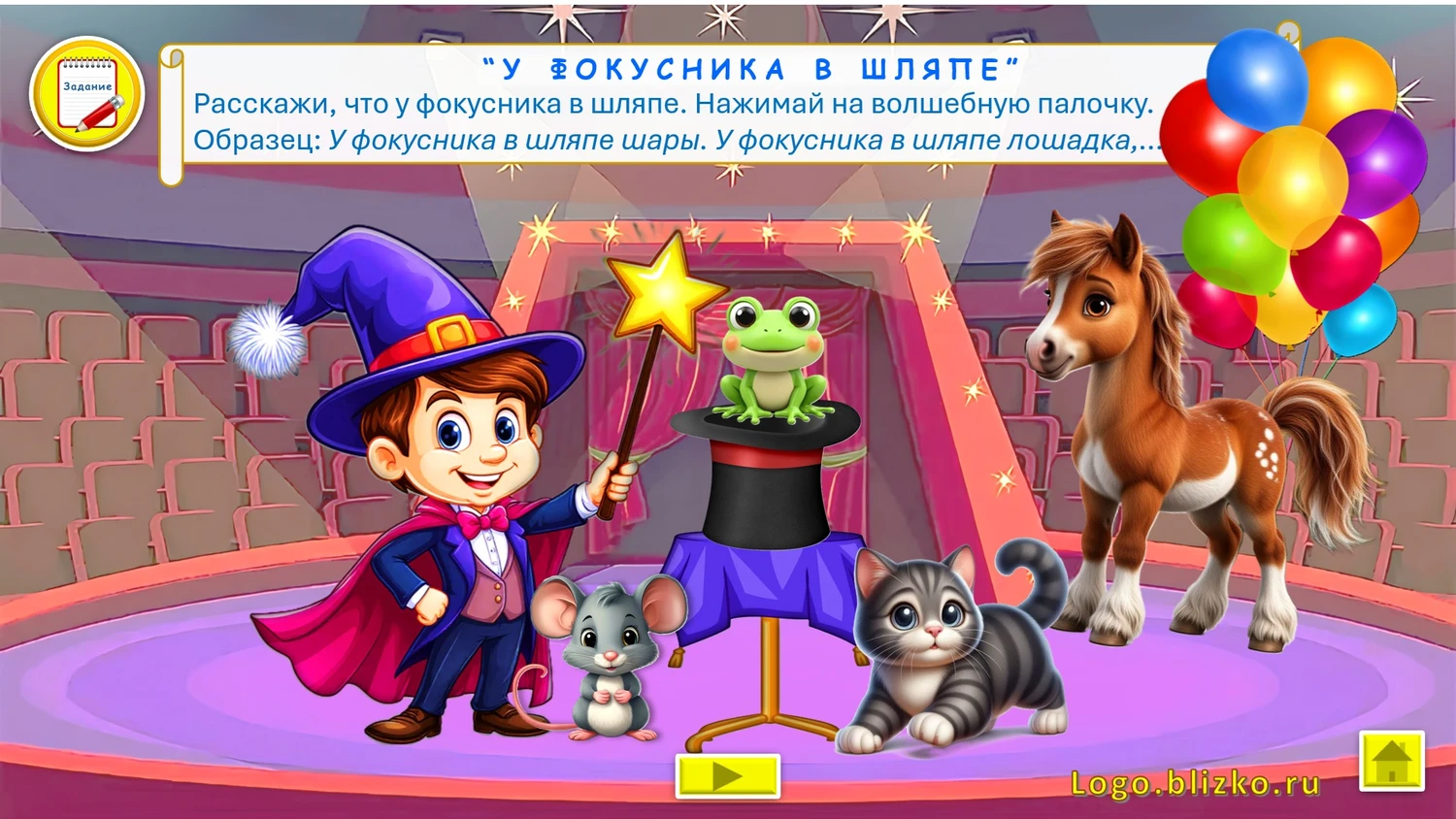 9 слайд «У ФОКУСНИКА В ШЛЯПЕ» Автоматизация звука в предложениях