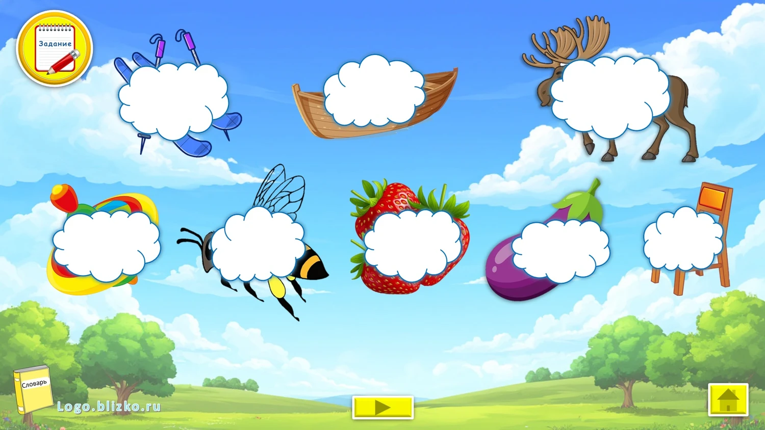4 слайд «Что за облаками?» Автоматизация звука в словах