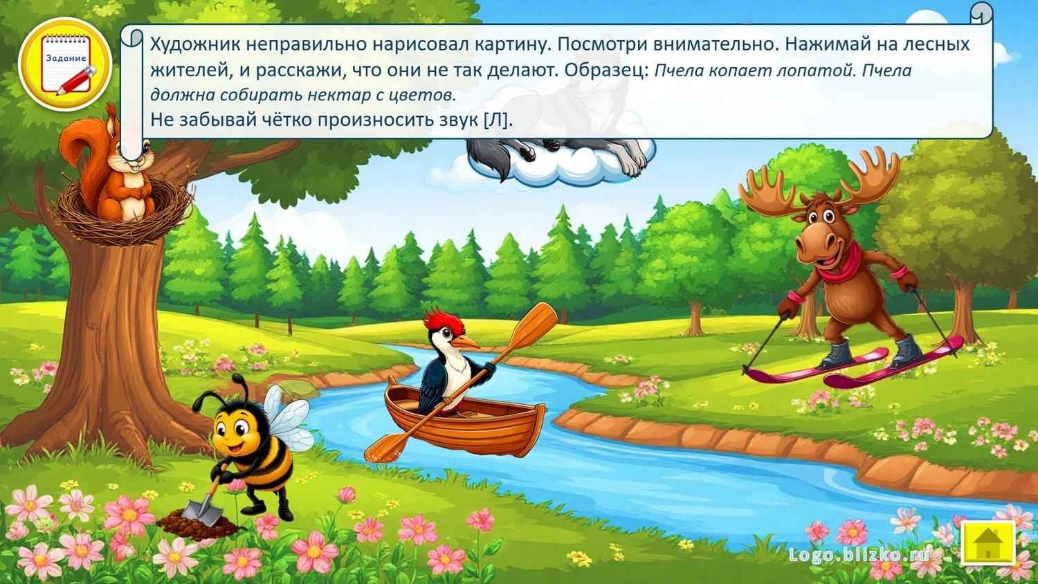 Ребёнок выполняет задания, тем самым, закрепляется звук в речи.