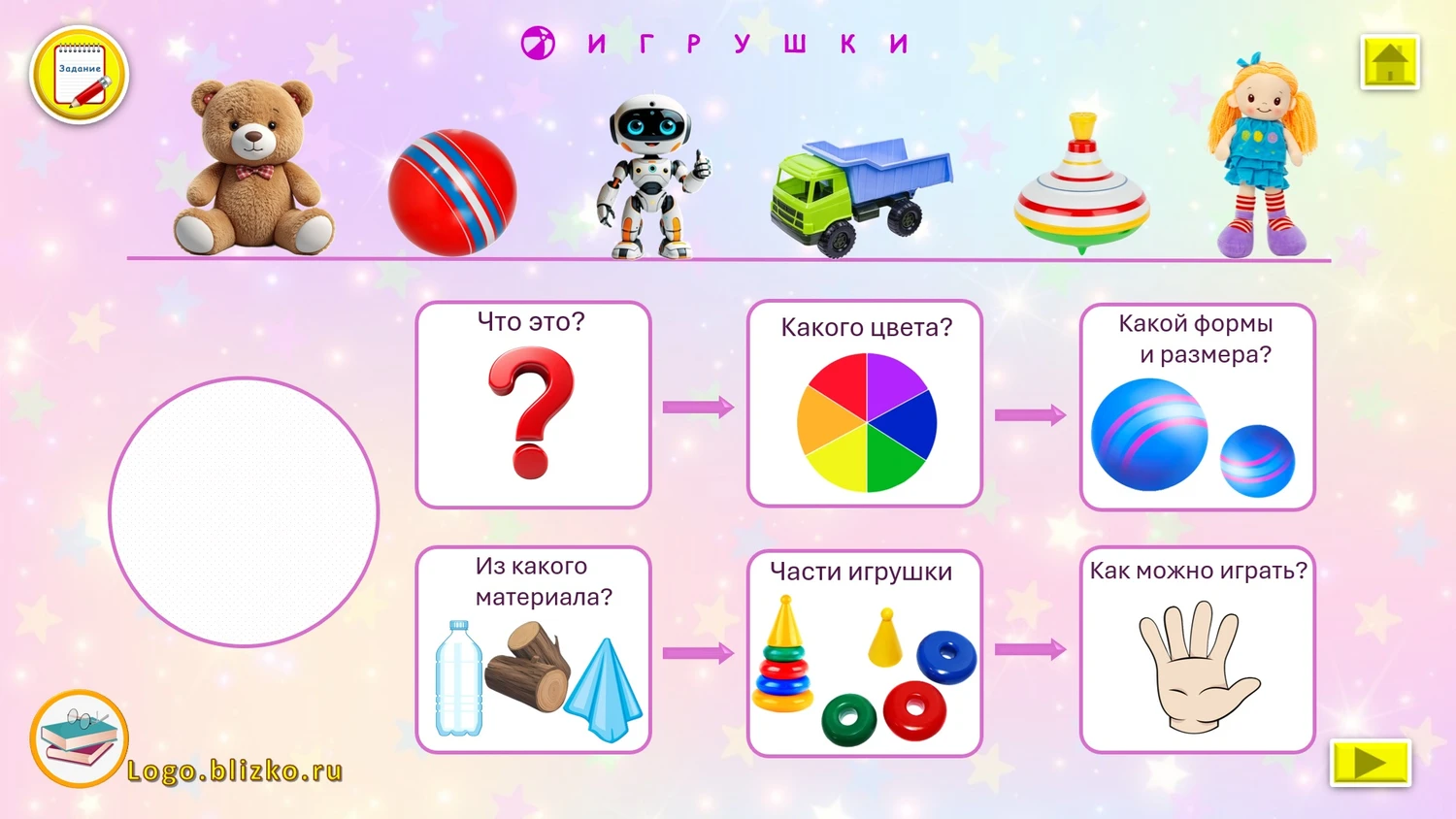 Логопедическое интерактивное пособие, которое поможет ребёнку научиться составлять описательные рассказы. Пособие включает 11 основных лексических тем.