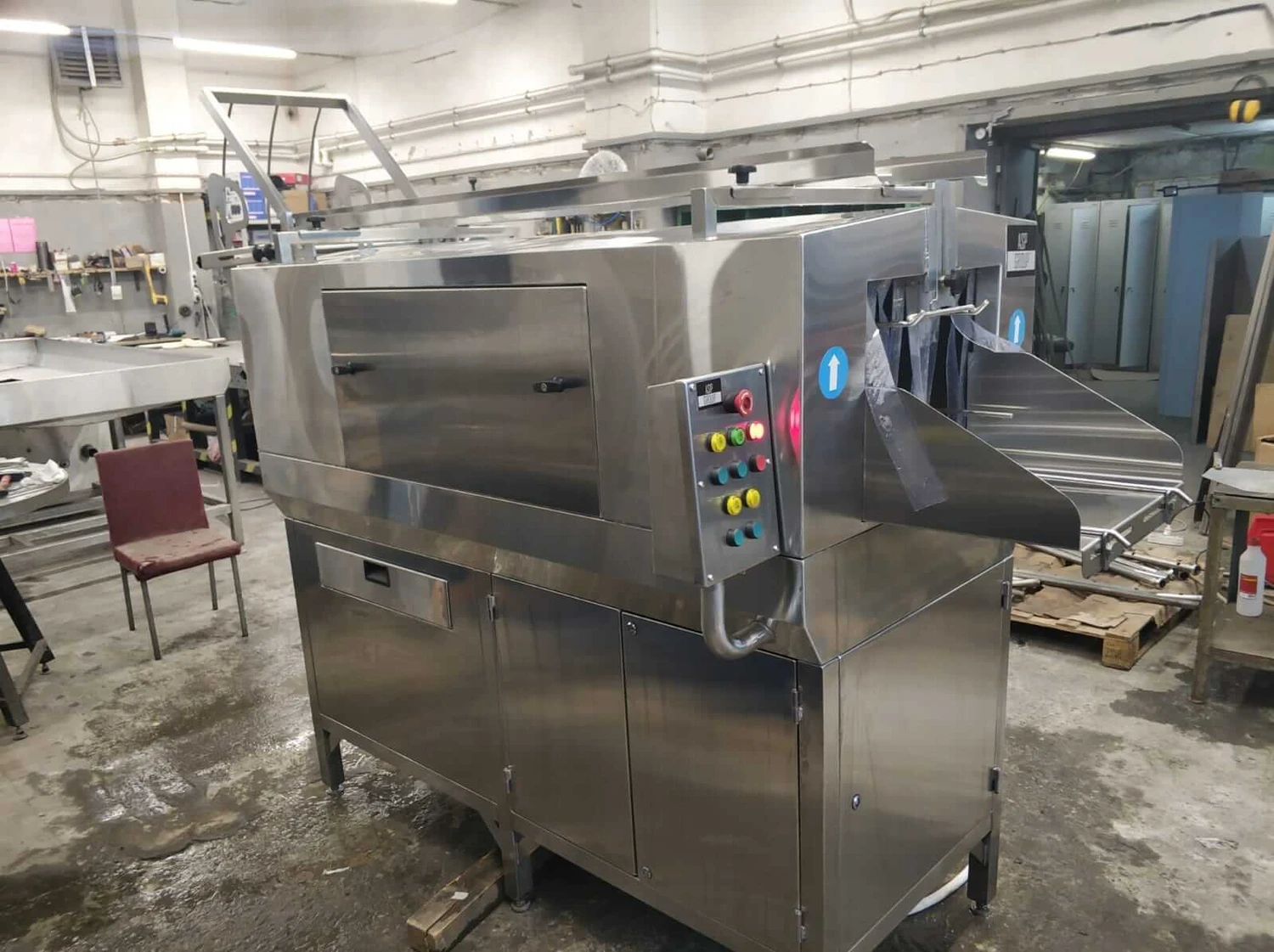 По окончании полного цикла мойки, второй оператор с противоположной стороны удаляет вымытую тару. При необходимости машину оснащают модулем обратной подачи тары, тем самым машину сможет обслуживать один сотрудник. При сильных и сложных загрязнениях тары есть возможность оборудовать машину более мощным насосом. Также существует ряд других опций.