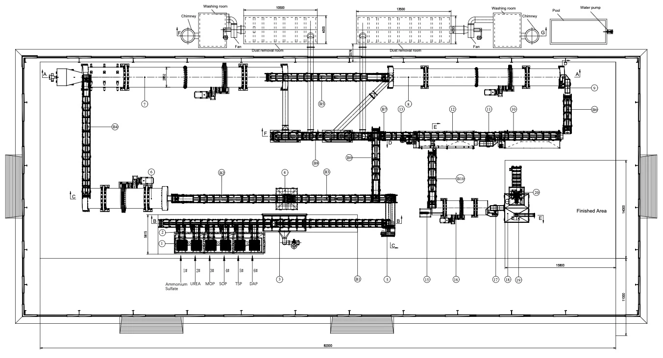 Прогнозируемая производительность: 20 тонн в час (144 000 тонн в год) удобрений NPK;