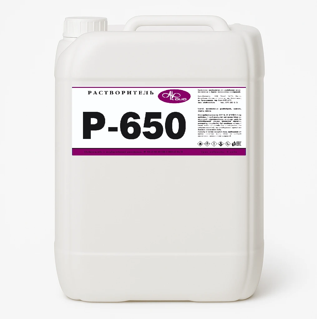 Растворитель Р-650 — это многокомпонентный органический растворитель, предназначенный для разбавления лакокрасочных материалов и выполнения специальных окрасочных работ.