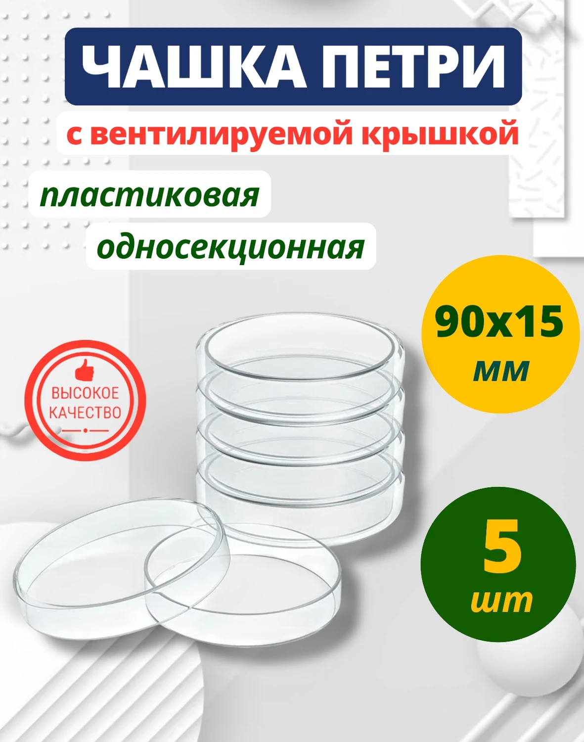 | Чашки Петри пластиковые 90х15 мм, упаковка 5 шт. | 240 ₽ / всего |