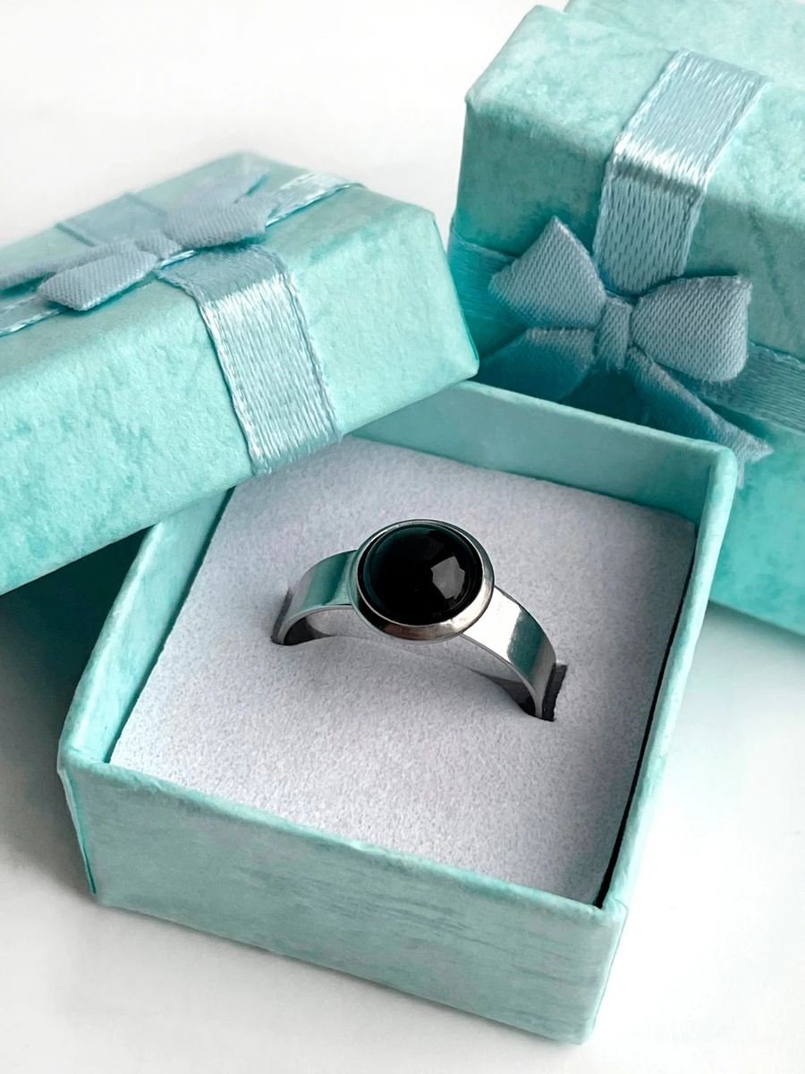 Кольцо женское с черным камнем, диаметров 8 мм, упаковано с плотную коробочку, поэтому оно отлично подойдет в качестве подарка для девушки, для любимой, для подруги, для дочки, для мамы.