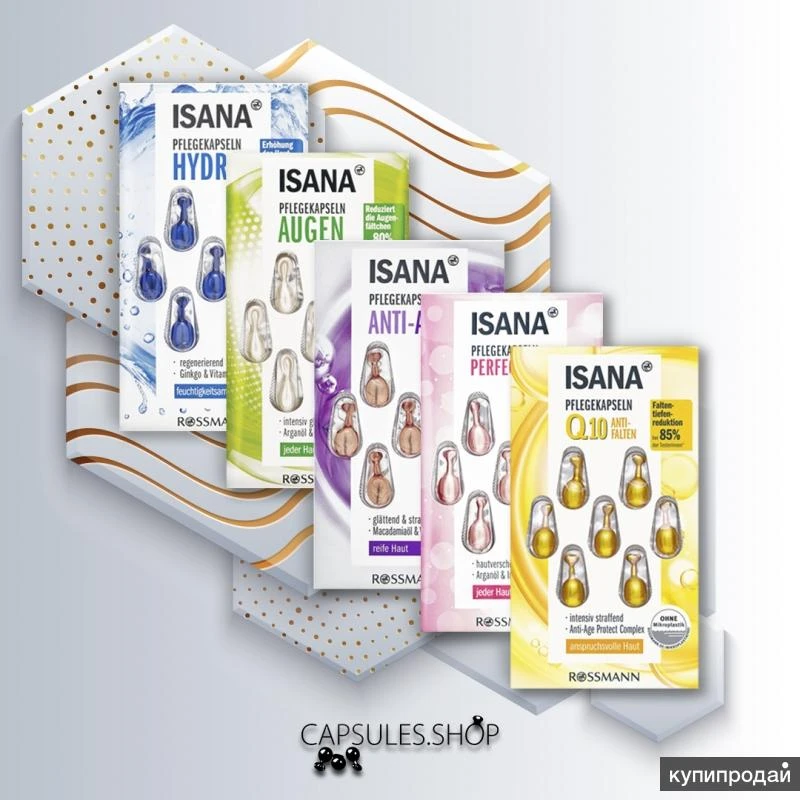 Капсулы для лица ISANA Минимальный заказ 5 упаковок любого из видов представленных ниже! Сомневаетесь какие вам нужны - напишите я вам посоветую! ISANA Vital Augen-Kapseln восстанавливающие капсулы для глаз блистер 7 капсул - 315 руб. ISANA Q10 Pflegekapseln капсулы для лица с Q10 блистер 7 капсул - 315 руб. ISANA Hydro Booster Pflegekapseln увлажняющие капсулы для лица блистер 7 капсул - 315 руб. ISANA Perfect Teint Perfect Teint Beauty-Kapseln капсулы красоты блистер 7 капсул - 315 руб. ISANA Anti-Age Pflegekapseln омолаживающие капсулы блистер 7 капсул - 315 руб. ISANA Night & Beauty Pflegekapseln ночные капсулы красоты 7 капсул - 315 руб. ISANA сыворотка для лица с витамином С и маслом маракуй Pflegekapseln Vitamin C 7 капсул - 315 руб. Капсульная косметика, сыворотка в капсулах, капсулы для лица. Доставка СДЕК по РФ.