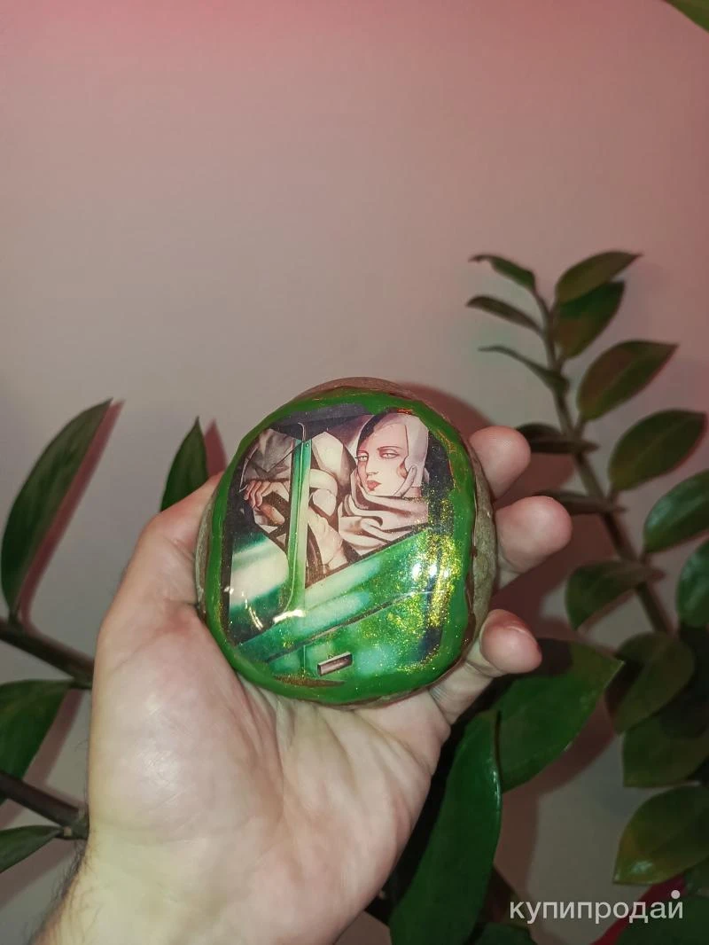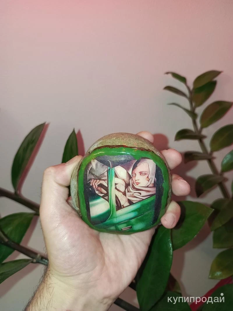Уникальное произведение искусства ручной работы. Этот камень, выбранный самой природой, превратился в миниатюрную галерею. На его гладкой поверхности застыла история, рассказанная с помощью современного искусства. Техника исполнения. Изображение нанесено методом комбинированной фотопечати и акриловой живописи. Каждый мазок кисти и каждая деталь рисунка созданы вручную, что придает изделию неповторимый шарм. Для долговечности и сохранности изображения камень покрыт ювелирной смолой, придающей ему глубину и блеск. Материалы. Основой сувенира служит натуральный камень, обладающий природной красотой и энергетикой. Использование акриловых красок и ювелирной смолы гарантирует высокую стойкость изображения к внешним воздействиям. Дизайн. Центральным элементом композиции является изображение. Яркие цвета, контрастные линии и тщательно продуманная композиция создают неповторимый образ, который будет радовать глаз и вдохновлять. Особенности. * Эксклюзивность. Каждый камень уникален по форме и текстуре, что делает каждое изделие неповторимым произведением искусства. * Многогранность. Сувенир может стать как ярким акцентом в интерьере, так и оригинальным подарком для близких людей. * Практичность. Благодаря покрытию ювелирной смолой, изделие устойчиво к влаге и механическим повреждениям. Artstones. Это не просто сувенир, это произведение искусства, созданное с любовью и вдохновением. Каждый камень – это маленькая вселенная, застывшая во времени.