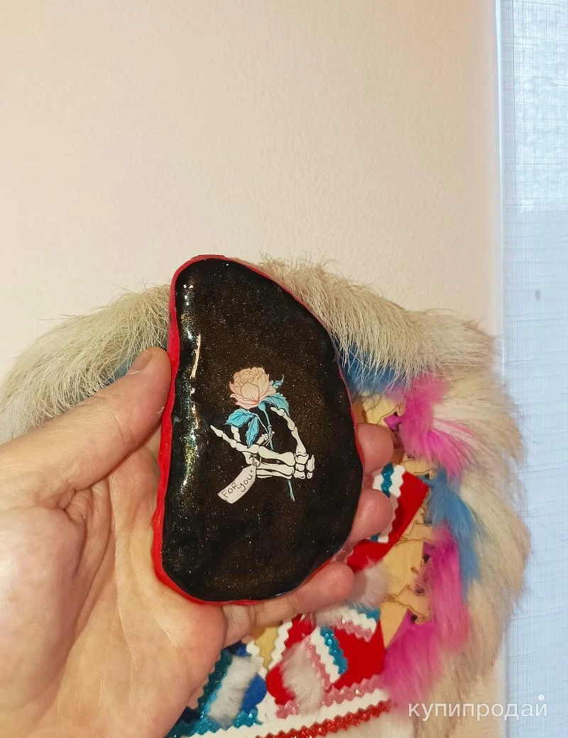 Сувенир Artstones: Искусство в камне Что это? Это уникальный, созданный вручную сувенир от Artstones. Основой служит натуральный камень, на который наносится изображение с помощью сочетания фотопечати и акриловых красок. Для долговечности и защиты изображения используется ювелирная смола. Что делает его особенным? * Индивидуальность: Каждый сувенир - это произведение искусства, созданное вручную, что делает его неповторимым. * Натуральность: Использование натурального камня придает сувениру природную красоту и теплоту. * Сочетание техник: Комбинация фотопечати и ручной росписи позволяет создавать невероятно детализированные и выразительные изображения. * Защита: Ювелирная смола надежно защищает изображение от внешних воздействий, продлевая срок службы сувенира. Что изображено? На представленном сувенире изображена нежная роза, которую держит скелетная рука. Это интересное сочетание символов жизни и смерти, которое может иметь множество трактовок. Где можно использовать? Такой сувенир станет прекрасным украшением интерьера. Его можно разместить на полке, столе или повесить на стену. Он также может стать оригинальным подарком для близкого человека. Почему стоит выбрать Artstones? * Высокое качество: Все сувениры Artstones изготавливаются вручную с использованием высококачественных материалов. * Оригинальный дизайн: Компания предлагает широкий ассортимент дизайнов, каждый из которых уникален. * Индивидуальный подход: Вы можете заказать сувенир с вашим собственным изображением или выбрать готовый дизайн. Заключение Сувениры Artstones - это прекрасный способ добавить в свой дом или офис нотку индивидуальности и стиля. Если вы ищете оригинальный подарок или просто хотите порадовать себя, обратите внимание на эту марку.