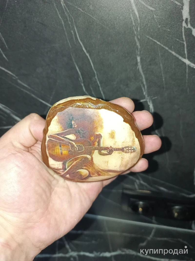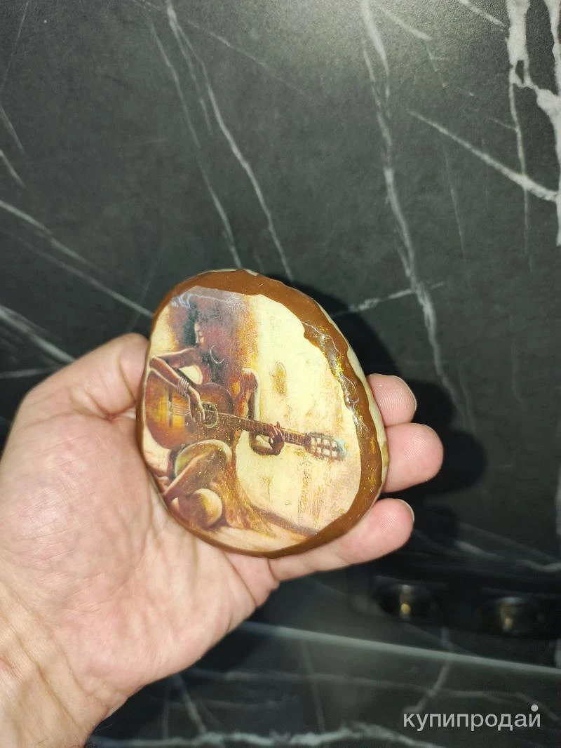 Уникальная ручная работа из натурального камня. Изображение женщины, играющей на гитаре, нанесено с помощью комбинированной фотопечати и акриловой краски. Для долговечности изделие покрыто ювелирной смолой. Ключевые особенности: * Материал: Натуральный камень * Техника: Комбинированная фотопечать и акриловая роспись * Защита: Ювелирная смола * Автор: Artstones Этот сувенир станет прекрасным подарком для любителей музыки и искусства. Он сочетает в себе красоту природы и мастерство художника. Возможности использования: * Декор интерьера: Будет эффектно смотреться на полке, столе или комоде. * Оригинальный подарок: Подойдет для любого повода. * Коллекционирование: Станет ценным экземпляром в коллекции изделий ручной работы. Почему стоит выбрать этот сувенир: * Уникальность: Каждое изделие создается вручную и является неповторимым. * Высокое качество: Используются только натуральные материалы и профессиональные инструменты. * Оригинальный дизайн: Изображение женщины, играющей на гитаре, не оставит никого равнодушным. Закажите этот уникальный сувенир уже сегодня и порадуйте себя или своих близких!
