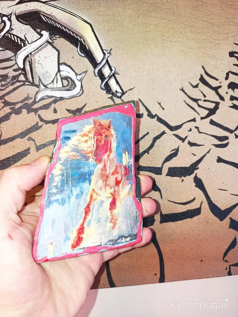 Почувствуйте энергию дикой природы, заключенную в этом удивительном сувенире из натурального камня. Грациозная лошадь, изображенная на камне, словно оживает под вашими глазами благодаря сочетанию фотопечати и акриловой росписи. Ручная работа мастера делает этот сувенир по-настоящему уникальным и наполненным душой.