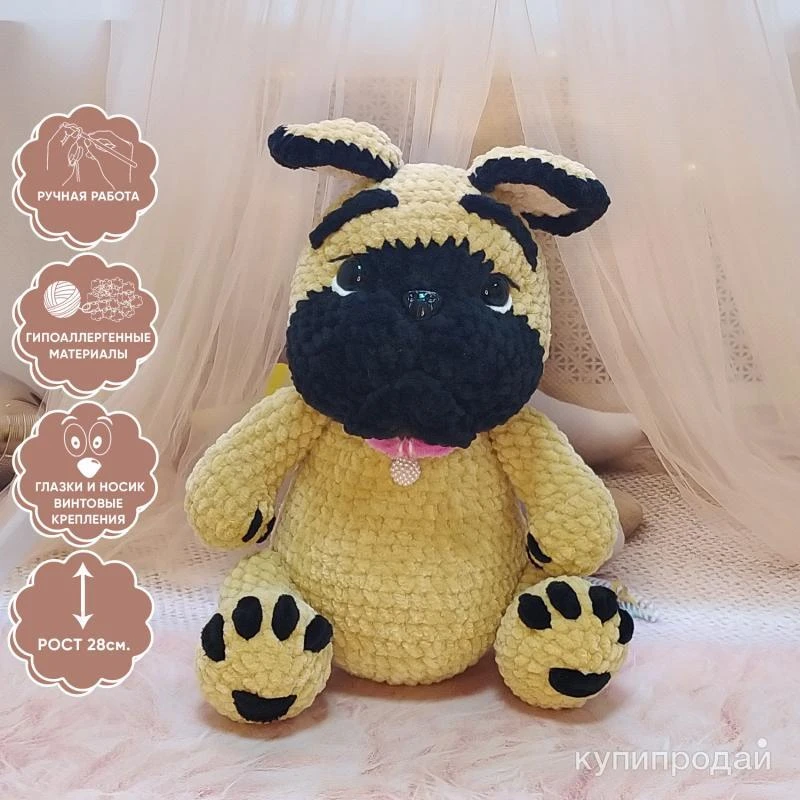 ? Дарите родным и близким радость! ? ❗️ Игрушка в наличии разного цвета, смотрите фото ? Вязаная игрушка французский бульдог Жак ручной работы, замечательный и оригинальный подарок для детей и взрослых! ? Милая игрушка подарит радость и добавит уют в доме. Такой подарок обязательно вызовет улыбку на лице и поднимет настроение. ❗️ Игрушка связана для Вас с любовью вручную из гипоаллергенной и безопасной для детей плюшевой пряжи, наполнитель холлофайбер, глазки и носик на надежных винтовых креплениях. Ошейник с бижутерией. ? Прекрасно выглядит в качестве предмета интерьера. ↕️ Рост 28см. ? Дарите Родным и Близким радость! Вяжу для Вас игрушки, пледы и подушки с любовью! ? ? Самовывоз: Москва ?♂ Доставляем курьером по г.Москва в пределах МКАД ? Доставка "Почта России", "СДЭК" ❗️ Еще больше игрушек, подушек и пледов в моём интернет магазине. Ссылка (Перейти на сайт) под отзывами (смотрите справа).