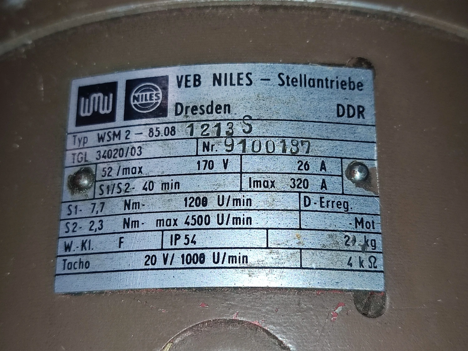 Завод-изготовитель: WEB NILES Stellantriebe (ГДР)
