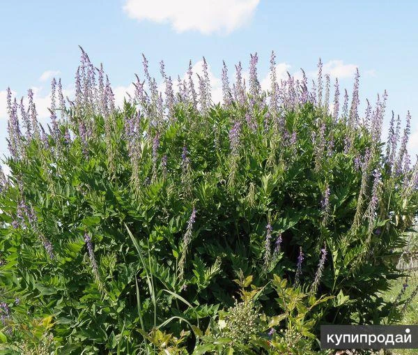 Козлятник восточный или галега восточная (Galega orientalis) – многолетнее травянистое декоративное и лекарственное растение высотой до 1,5 м с перистыми листьями. Цветет продолжительно в июне-июле сине-фиолетовыми мотыльковыми цветками в длинных соцветиях. Неприхотливо, зимостойко, в Сибири прекрасно растет, плодоносит, зимует без укрытия. Отвары и настои травы козлятника обладают инсулиноподобным действием, то есть понижают содержание сахара в крови. Поэтому применяются в диете при диабете. Кроме того, научно установлено противосвертывающие, диуретическое и лактогонное действие. В народной медицине водные настои из листьев и травы козлятника используют в качестве потогонного, мочегонного, антибактериального и противоглистного средства. На фото один разросшийся 5-ти летний куст. Подробная статья о козлятнике, его лекарственных свойствах, рецепты применения, инструкции по выращиванию на сайте питомника. Семян козлятника не бывает в продаже в садовых центрах. Их можно купить у нас – рассылаем почтой по России. В пакете более 30 шт (сколько на фото № 2), всхожесть сохраняется 3 года. Исполнение заказа за неделю. Условия заказа, каталог с ассортиментом более 200 других редких и экзотических садовых лекарственных, плодовых, пряных, декоративных растений, овощей, цветов, кустарников, деревьев, прайс-лист, фотоальбом (более 3 миллионов просмотров) на сайте питомника.