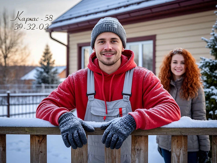 Планировочные решения можно подобрать на сайте Каркас-58, а если нужно переделать, перенести перегородки, расширить-уменьшить - сделаем это бесплатно. Заказывая строительство теплого дома зимой, можно попасть на понижение цены на материалы и сэкономить. Невозможность зимней стройки - отсутствие подъездного пути и электроснабжения.