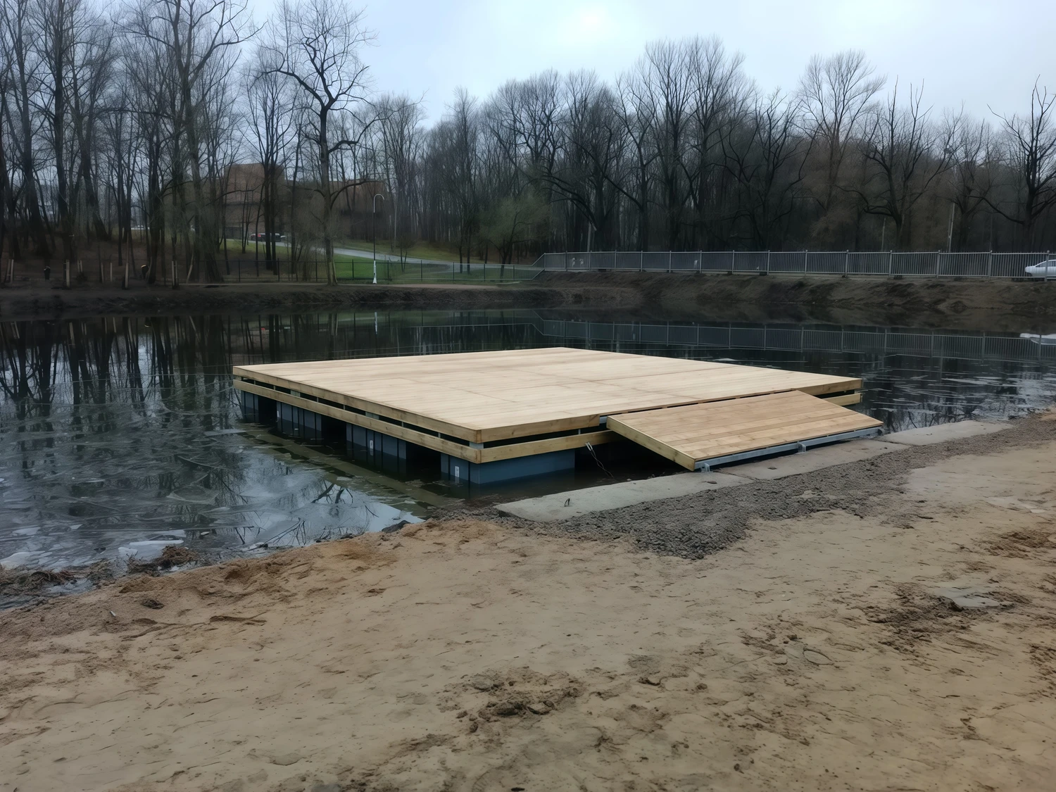 Площадку можно доукомплектовать перильным ограждением, лестницей для спуска в воду, переходным трапом и якорной системой для надёжной фиксации.