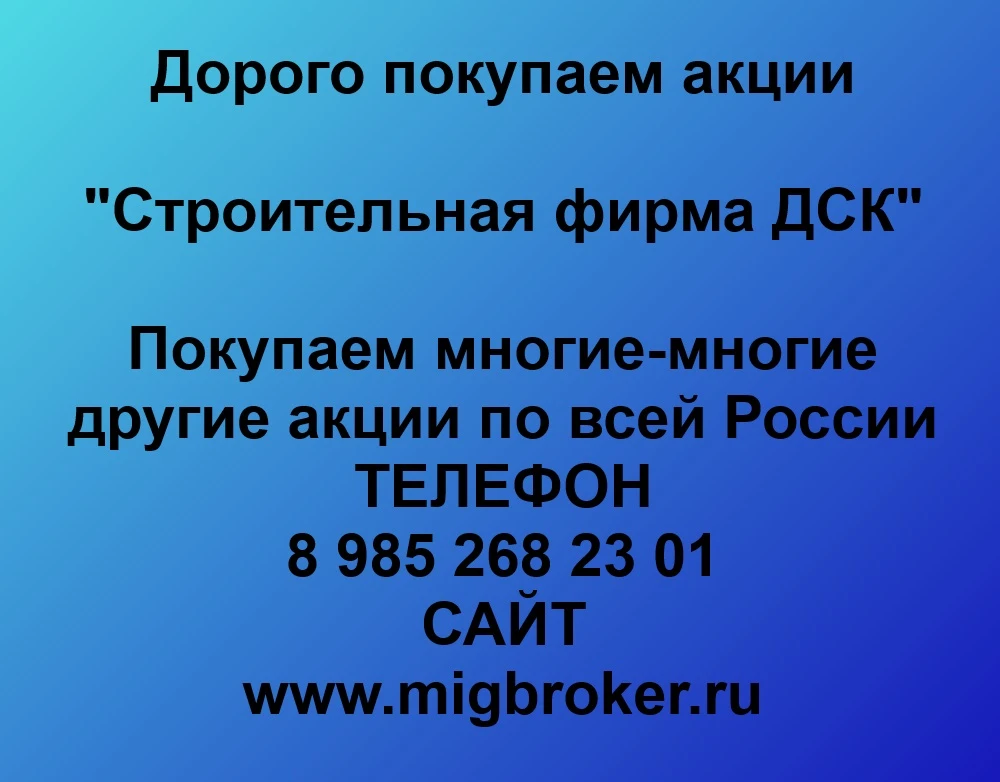 Покупаем акции «Строительная фирма ДСК» и любые другие акции по всей России