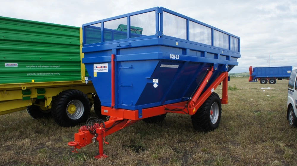 Полуприцеп тракторный самосвальный для жидких фракций ПТСЖ-9&160;предназначен для перевозки и выгрузки назад любых жидких, полужидких и сыпучих сельскохозяйственных и строительных грузов. Полуприцеп агрегатируется с колёсными тракторами тягового класса 3,0
