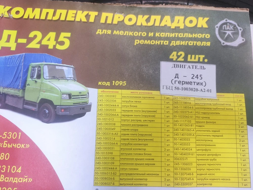 Прокладки Д-240,-245 (МТЗ) комплект полный