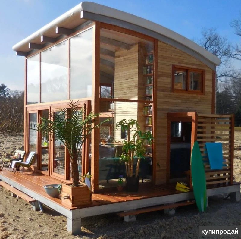 Пляжный домик в современном стиле — это отличное решение для всех любителей солнца и моря. Пляжный домик на берегу любого водоема — это отличное место для отдыха. Строительная бригада предлагает свои услуги по строительство не больших пляжных домиков из бруса. Услуга дизайнера.