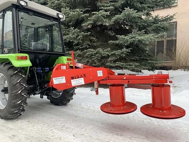 Косилка польского производства «Wirax». Косилка предназначена для скашивания высокоурожайных и полеглых трав. Навешивается сзади на тяги навесной системы трактора. Заготовленные массы укладываются в прокосы для удобства дальнейшей обработки. Проверено временем конструкционное решение и подбор качественных материалов гарантирует долгосрочную службу косилки.