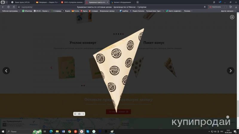 Бумажные пакеты Бумажные пакеты широко применимы при фасовке сыпучих пищевых и непищевых продуктов, для упаковки фаст-фуда, выпечки, еды на вынос. Могут быть изготовлены из различных видов бумаги – белой, коричневого крафта, бежевого финского крафта, жировлагостойкой, ламинированной и влагопрочной бумаги от различных производителей – Россия, Беларусь, Финляндия, Швеция, Германия, Чехия. Бумажные пакеты с ручками Бумажные пакеты с ручками чаще всего используется для продуктов, бакалеи, одежды, обуви, сувенирной продукции, подарков. А также является удачным широкопросматриваемым рекламным источником. Могут быть изготовлены из различных видов бумаги – белой, коричневого крафта, бежевого финского крафта, жировлагостойкой, ламинированной и влагопрочной бумаги от различных производителей – Россия, Беларусь, Финляндия, Швеция, Германия, Чехия. Дополнительная информация... Материал: Размеры (объём): Белая влагопрочная 80 – 90 g/m² 90*60*230 Коричневый крафт 80 g/m² 90*60*255 Жировлагостойкая 50 g/m² 105*65*265 120*50*160 120*50*350 120*80*240 120*80*350 130*85*310 150*90*300 180*110*315 Свой размер Бумажные пакеты с прямоугольным дном Используется для фасовки муки, круп, сахара, крахмала, соли, соды, а также для упаковки гамбургеров, хот-догов, картофеля фри, курицы гриль, пончиков, поп-корна, чая, кофе, сувениров, упаковки бутылок, для корма животных и для сухих строительных смесей, цемента. Дополнительная информация... Бумажные пакеты с клиновидным дном Чаще всего применяется для хлеба, багетов, выпечки, вафель, конфет, кур гриль, хот-догов, картошки фри, сэндвичей, зелени, косметики, гигиенических и медицинских изделий. Дополнительная информация... Материал: Размеры (объём): Белая влагопрочная 40 – 90 g/m² 90*20*225 Коричневый крафт 35 – 70 g/m² 120*50*160 Жировлагостойкая 50 g/m² 120*50*215 150*60*145 250*40*300 110*40*500 110*55*600 окно 50 180*70*300 210*60*390 окно 150 Свой размер Бумажные пакеты с клиновидным дном с окном из пленки Зачастую используется для багетов, выпечки, хлеба, кур гриль, мясных и колбасных изделий, кур гриль, сэндвичей, зелени, овощей, косметики, гигиенических и медицинских изделий. Дополнительная информация... Материал: Размеры (объём): Белая влагопрочная 40 – 90 g/m² 90*20*225 Коричневый крафт 35 – 70 g/m² 120*50*160 Жировлагостойкая 50 g/m² 120*50*215 150*60*145 250*40*300 110*40*500 110*55*600 окно 50 180*70*300 210*60*390 окно 150 Свой размер Уголок-конверт Применяется для блинов, хот-догов, гамбургеров, сэндвичей, пирожков. Пакет-конус Пользуется спросом для картошки фри, попкорна, семечек, орешков.