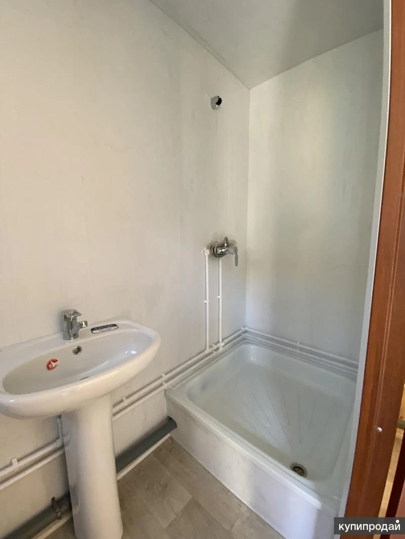 «Дачный домик 7000х3000х2800мм» Каркас металлический из профильной трубы (50х50х2мм.50х25х2мм.80х40х2мм.) сваренные между собой полуавтоматической сваркой образующий объемную конструкцию и прочностные характеристики. Грунтован Верхняя обвязка из профильной трубы (50х50х2мм) Внешняя обшивка – профилированная оцинкованная сталь ПК 20 с полимерным покрытием цвет 8017 (коричневый), толщ. 0,45мм Гидроветроизоляция Утепление - минеральная вата, толщ. 100мм Пароизоляция Потолок – ПВХ панели цвет белый матовый Контур пола и лаги из профильной трубы (80х40х2мм) Основание каркаса подшито гладким оцинкованным листом Деревянный брус 50х50мм Утепление – минеральная вата, толщ. 100мм Доска 25х150мм Гидроветроизоляция Влагостойкий OSB 9мм Линолеум ПВХ Парма Аршан прижат кабель-каналом Стойки металлические из профильной трубы (50х50х2мм-4шт, 50х25х2мм-4шт) Внешняя обшивка – профилированная оцинкованная сталь ПС 8 с полимерным покрытием цвет Золотой дуб, толщ. 0,45мм Гидроветроизоляция Деревянный брус 50х100мм Утепление - минеральная вата, толщ. 100мм Внутренняя отделка стен - Евровагонка сорт С (есть дефекты в виде смолянистых потеков, черных сучков, трещин, сквозных отверстий – которые заполняются монтажной пеной). Дверь входная металлическая утепленная с замком размером 850х2050мм 1шт. Межкомнатная дверь глухая с замком размер 700х2000мм - 2шт (цвет миланский орех). Окна металлопластиковые белые: 900х1200мм поворотно-откидное 2шт Москитные сетки – 2шт Подоконник 100мм. Фрамуга 500х500мм Инженерные системы здания: Многоконтурное от распределительного щита. Проводка ВВГ нг 3*2,5 розеточная группа, ВВГ нг 2*1,5 освещение. Электропроводка выполнена, открыто в кабель-каналах согласно норм. Эл, розетки (двойные с заземлением) схема Эл. розетка уличная Светильник светодиодный схема Выключатель одноклавишный схема Выключатель трехклавишный схема Санузел размером 900х2800мм Внутренняя отделка стен: пароизоляция, ПВХ панели цвет белый матовый Установлены: унитаз, водонагреватель 50л, душевой поддон со смесителем размером 900х900мм, раковина со смесителем. Полная разводка труб, с выводом труб под кухню. Вентилятор вытяжной