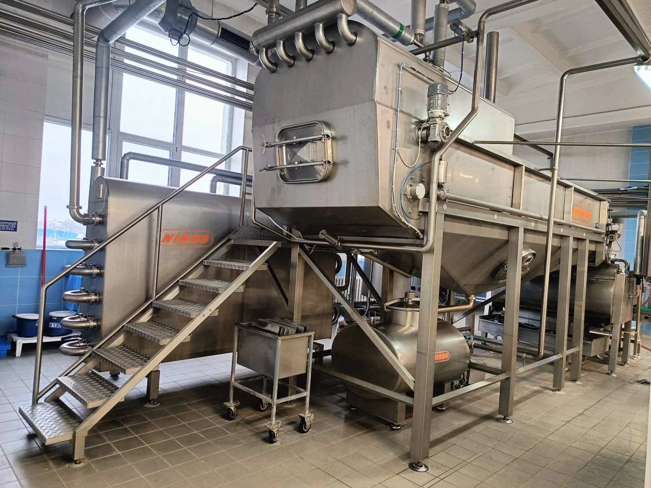 Линия по охлаждению творога Nikos, производительность 1 т в час, промышленный холод в составе линии
