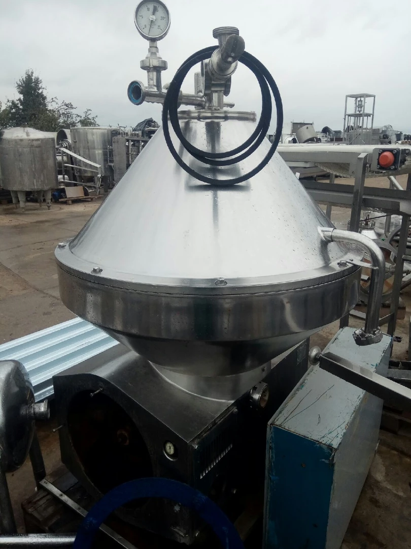 Самоочищающийся сепаратор для молока Nagema SMZC 1.13, 316SS. предназначен для высокоэффективного разделения молока с оптимальным отделением сливок и обезжиренного молока. Этот сепаратор с максимальной скоростью вращения чаши 4650 об/мин и номинальной производительностью 25 000 литров в час (л/ч) разработан с учетом высоких требований современных предприятий по переработке молока. Мощный двигатель на 30 кВт работает от сети 380 В, 3 фазы, 50 Гц, обеспечивая необходимую мощность для поддержания стабильной производительности даже при высоких нагрузках. Наличие отстойника позволяет эффективно удалять осадок и примеси, гарантируя соответствие конечного продукта самым высоким стандартам качества. Это оборудование находится в очень хорошем состоянии, что делает его надежным выбором для предприятий, стремящихся расширить свои производственные возможности.