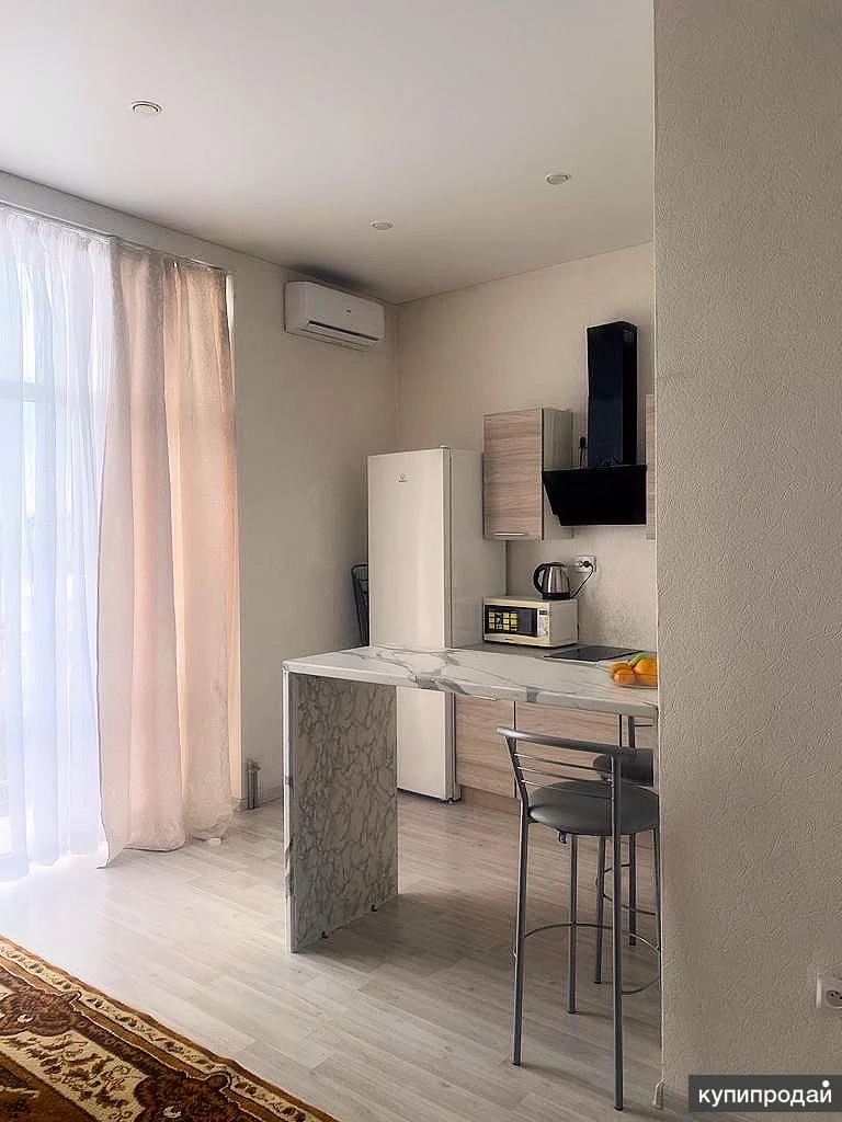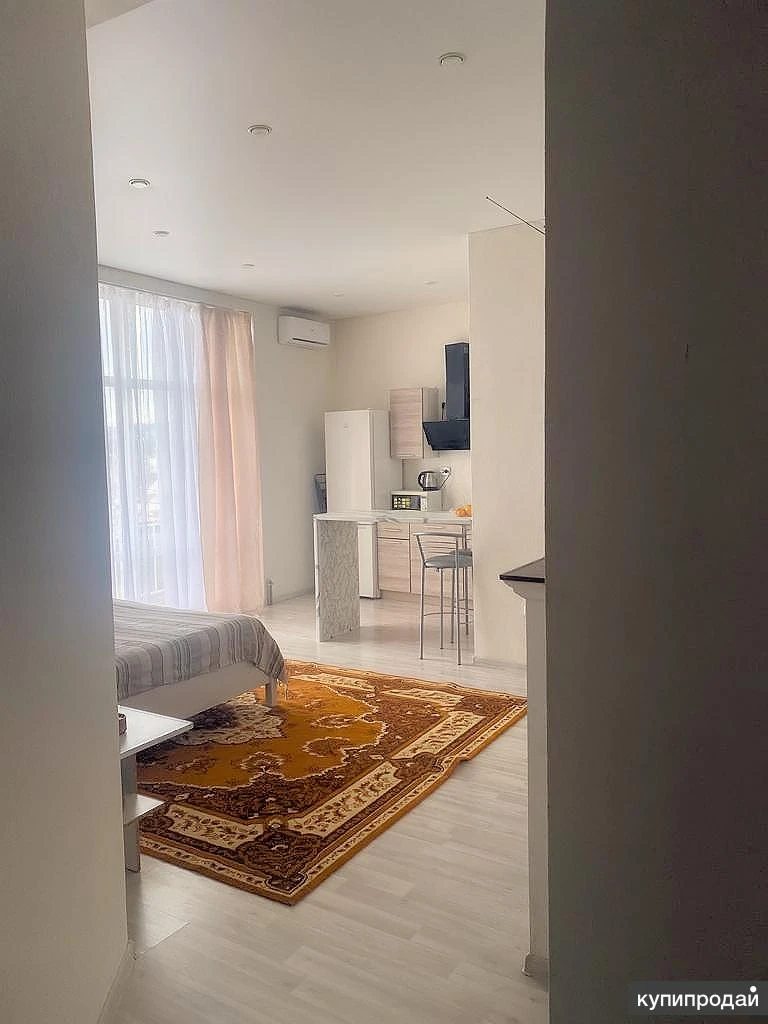 Квартира студия – 34,4 м2 под сдачу в Сочи. Сама квартира 28,8 м2 + 5,6 м2 открытый балкон (при желании можно застеклить). С ремонтом, мебелью и техникой. Тёплые полы на кухне и в санузле. Установлен водонагреватель, есть кондиционер. При продаже всё остаётся. Дом 2017 года. Отлично сдаётся круглый год. Полный пакет документов. Оформлена, как жилое помещение и доля земельного участка. (!) 100 % Гарантия чистоты сделки - оформление купли-продажи через нотариуса! Полная сумма в договоре. Звоните - договоримся!