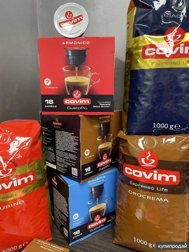Продажа кофе итальянского бренда Covim. Ассортимент : Кофе в зернах COVIM ARABICA BIO RFA, 1 кг 100% Арабика БЕЗ ГМ Кофе в зернах COVIM GIADA, 1 кг 75% Арабика, 25% Робуста, для Эсперессо Кофе в зернах COVIM Gold Arabica, 1 кг, 100% Арабика Кофе в зернах COVIM MISCELA BAR, 1 кг 50% Арабика, 50% Робуста Кофе в зернах COVIM Orocrema, 1 кг, 100% Робуста Кофе в зернах COVIM PLATINUM (GRAND BAR) , 1 кг, 16% Арабика, 84% Робуста Кофе в зернах COVIM PREMIUM (Orocrema), 1 кг, 100% Робуста Кофе в зернах COVIM PRESTIGE, 1 кг, 35% Арабика, 65% Робуста Кофе в зернах COVIM RUBINO, 1 кг , 90% Арабика, 10% Робуста Кофе в зернах COVIM Suave DECAFFEINATED, БЕЗ КОФЕИНА, 0.5 кг, 50% Арабика, 50% Робуста Кофе в капсулах COVIM Dolce Gusto ARMONICO, 50% Арабика, 50% Робуста, упаковка 16 капсул Кофе в капсулах COVIM Dolce Gusto BRIOSO, 25% Арабика, 75% Робуста, упаковка 16 капсул Кофе в капсулах COVIM Dolce Gusto, 50% Арабика, 50% Робуста, упаковка 16 капсул Кофе в капсулах COVIM NESPRESSO ALU CLASSICO, 25% Арабика, 75% Робуста, упаковка 10 капсул Кофе в капсулах COVIM NESPRESSO ALU DECAFFEINATO, 50% Арабика, 50% Робуста, упаковка 10 капсул Кофе в капсулах COVIM NESPRESSO ALU ESPRESSO, 50% Арабика, 50% Робуста, упаковка 10 капсул Кофе в капсулах COVIM NESPRESSO ALU MONORIGINE BRASILE, 50% Арабика, 50% Робуста, упаковка 10 капсул Кофе в капсулах COVIM NESPRESSO ALU MONORIGINE ETIOPIA, 50% Арабика, 50% Робуста, упаковка 10 капсул Кофе в капсулах COVIM NESPRESSO ALU ORO, 100% Арабика, упаковка 10 капсул Кофе в капсулах COVIM NESPRESSO ARMONICO, 50% Арабика, 50% Робуста, упаковка 10 капсул Кофе в капсулах COVIM NESPRESSO BRIOSO, 25% Арабика, 75% Робуста, упаковка 10 капсул Кофе в капсулах COVIM NESPRESSO MINUETTO, 50% Арабика, 50% Робуста, упаковка 10 капсул Кофе в капсулах COVIM NESPRESSO TANGO, 100% Арабика, упаковка 10 капсул Продаем мелким,средним,крупным оптом. Прайс-лист вышлем по запросу. Оплата по безналичному расчету. Covim был основан в 1991 году в результате слияния двух старых компаний по производству кофе, которые активно помогали распространять культуру кофе в Генуе в начале 1900-х годов. Кофейную компанию Covim контролируют члены пяти семей, которые также осуществляют операционный контроль в рамках бизнеса. Этот итальянский кофе имеет прочные позиции на национальном рынке, но также экспортируется в другие страны.