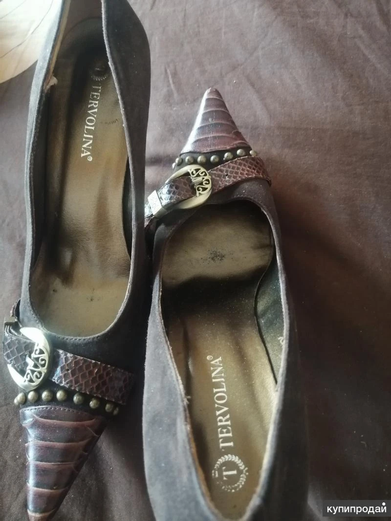 Замшевые туфли Терволина, с красиво оформленным носиком. С пряжкой. Каблучок устойчивый. Очень комфортно будет вам!
