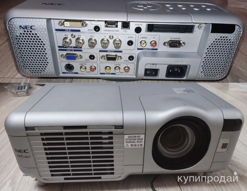 NEC MT1065 Digital Multimedia LCD проектор в отличном состоянии (лампа проработала на 46%). Дополнительно к нему новая оригинальная лампа с увеличенным сроком службы MT60LPS. Все фото реальные. В комплекте с проектором: - проектор NEC MT1065 - пульт с новыми батарейками - новый кабель питания - новый DVI кабель - новый VGA кабель - инструкция на англ.яз. в цифровом виде В комплекте с лампой: - новая оригинальная лампа с модулем MT60LPS - новый фильтр от пыли - оригинальная упаковка Краткие характеристики: Тип: Стационарный Назначение: Для офиса Разрешение проектора: 1024x768 Световой поток: 3400 лм Контрастность: 800:1 Технология: LCD Функции и параметры изображения: Коррекция трапецеидальных искажений, моторизированная фокусировка, моторизированное масштабирование Особенности: Колонки Разъемы и интерфейсы: RS-232, USB Type-A, USB Type-B, вход RGB, вход S-Video, вход VGA, вход аудио RCA x 2, вход аудио mini jack 3.5 mm, вход видео композитный, вход видео компонентный, выход аудио RCA Слот для PC Card: есть Уровень шума: 39 дБ Встроенные громкоговорители: 2 x 5 Вт Моторизированное масштабирование: есть Моторизированная фокусировка: есть Размеры (ШxВxГ): 316x108x328 мм Вес: 5.9 кг