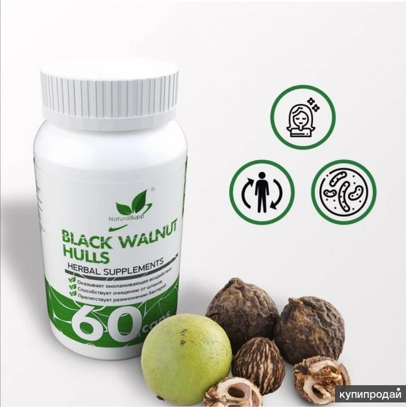 ?Скорлупа черного ореха - известный натуральный экстракт, который содержит такие полезные химические вещества, как: ?дубильные, ?флавоноиды, ?антоцианиды, обладающие целым спектром полезных действий: ?бактерицидным, ?противоотечным, ?противовоспалительным, ?способствуют укреплению стенок кровеносных сосудов, ?улучшают строение соединительных тканей, ?положительно влияют на работу пищеварительной системы, ?способствуют устранению дисбактериоза, диареи, а также выведению холестерина, токсинов и шлаков. ?Скорлупа чёрного ореха имеет высокую способность противостоять грибкам и вирусам, поразившим иммунитет человека. ?Способствует укреплению защитным силам организма, способствует повышению жизненного тонуса организма, тормозит развитие воспаления в тканях. ?Обладает антиоксидантным действием, защищает клетки от свободных радикалов. ✅Рекомендации по применению : По 1 капсуле, 2 раза в день, после еды ?Доставка : Самовывоз, СПб, Россия, СНГ (СДЭК, Почта России, Яндекс Доставка, Ситимобил, Достависта, Сберлогистика, Boxberry, PickPoint) ?Оплата : Безопасная сделка, наличными, онлайн перевод