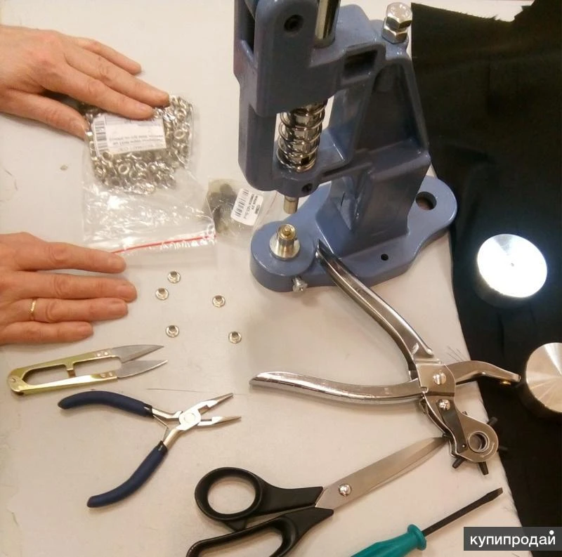 Установлю швейную фурнитуру ручным прессом. Кнопки; люверсы и блочки; хольнитены; джинсовые пуговицы и заклёпки; обувные крючки и петли. Некоторая фурнитура имеется. Пружинные кнопки 15 мм установлю любого производителя - и китайские и турецкие. Оцинкованные (тентовые) люверсы мне не поддаются, установить не смогу. Выезд к заказчику не рассматриваю. Выполню несложные сопутствующие швейные работы. Ассортимент матриц большой: люверсы (внутр. диаметр 2 - 3 - 3,5 - 4 - 4,5 - 5 - 6 - 7(Да, есть!) - 8 - 9 - 10 - 12 - 13 - 14 - 15 - 16 - 17 - 18 - 20 - 22 - 25 - 30 - 40 мм и овал 5х10 мм) (тентовые люверсы не устанавливаю!) кнопки пружинные (8, 10, 12, 15 и 22 мм) кнопки кольцевые (12, 15 и 15 мм-СССР), кнопки люверсные (они же клямерные - 12,5 - 15, 18 и 20 мм) кнопки рубашечные (они же детские или трикотажные - 9,5 и 10,5 мм; 9,5 мм с камнем ); кнопки пластиковые (Т3=10мм, Т5=12мм и Т8=14 мм) хольнитены (от 3 до 12 мм плоский, с толстой шляпкой 10мм, полусфера 4, 6, 7, 8, 9, 10, 12 и 14 мм); пуговицы джинсовые - на подвижной и неподвижной ножке; стразы 9 мм: обувные крючки и петли. Пробойники: 1 - 1,5 - 2 - 2,5 - 3 - 3,5 - 4 - 4,5 - 5 - 6 - 7 - 8 - 10 - 12 - 13 - 15 - 17 - 18 - 20 - 22 - 25 - 30 мм, 6х4 мм, 7х3 мм и 6х4,5 мм. Звоните, пишите, уточняйте, Звонить с 10 до 23.00. В рабочее время не всегда могу ответить (фурнитурой занимаюсь дома). Телефон кнопочный, на sms не отвечаю. Телеграмм на ноутбуке, из дома @zanoza1303 Вечером всегда отвечу. ВАЖНО. Если у вас своя фурнитура, то рекомендую иметь её с запасом - на пробу, с возможностью на ошибку. По фото не могу дать гарантию на качественную установку, особенно фирменной и комбинированной фурнитуры.