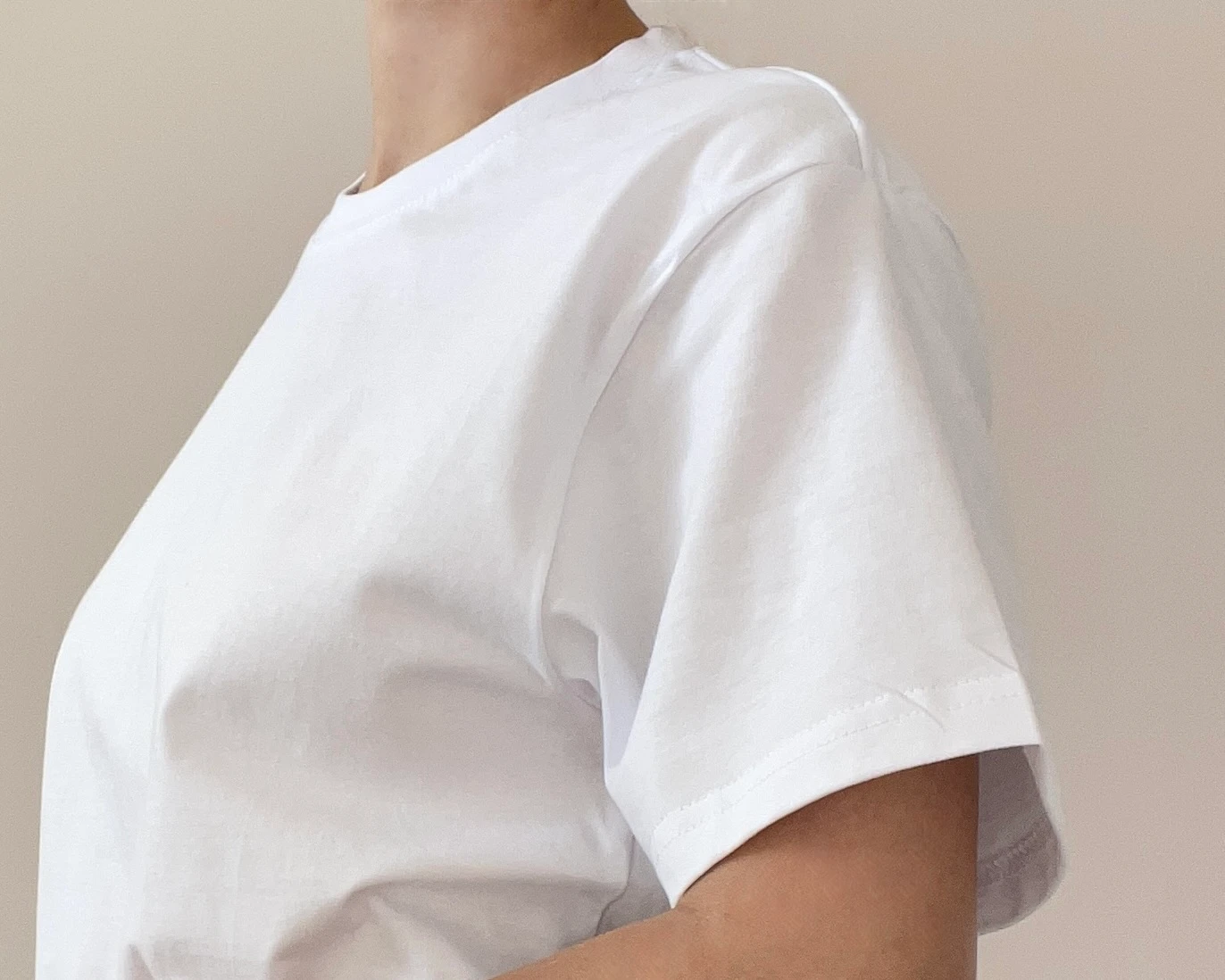 Черные и белые футболки оптом, короткий рукав. Ворот круглый, плечо и горловина усилены. Модель унисекс, классический свободный крой. Без принта, без бирок (только размерные бирки), в п/э упаковке каждая футболка